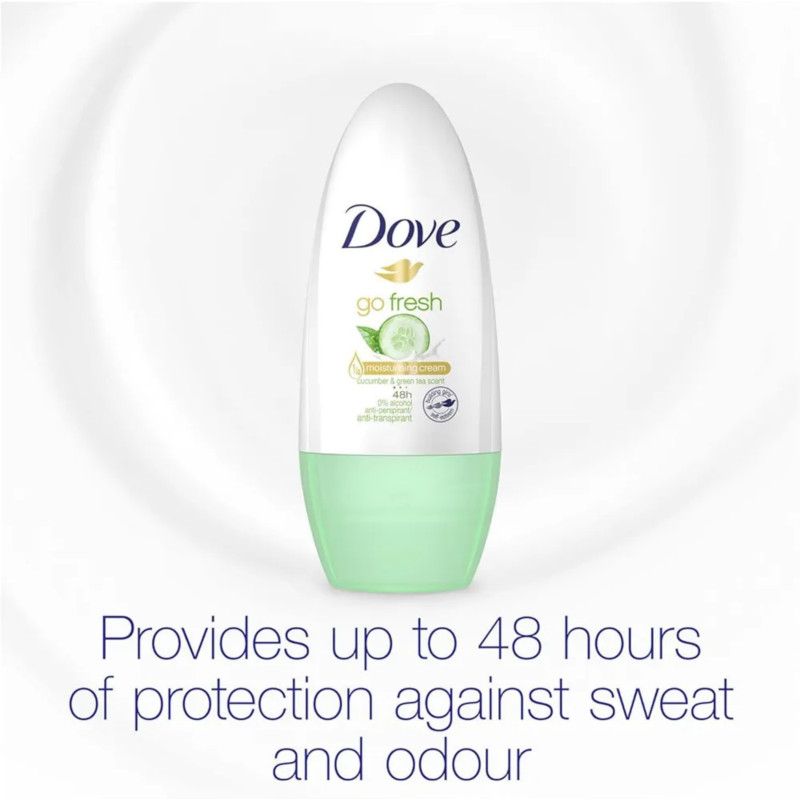 Dove Go Fresh Roll-On Deodorant with Cucumber and Green Tea Scent 50ml provides long-lasting protection against sweat and odor while keeping underarms fresh and comfortable all day. Its gentle formula is enriched with ¼ moisturizing cream, helping to maintain smooth, soft underarm skin without irritation. The refreshing cucumber and green tea fragrance delivers a subtle, invigorating scent that energizes the senses. Quick-drying and non-sticky, it absorbs instantly for a comfortable, mess-free application. Suitable for all skin types, including sensitive skin, and dermatologically tested for safety. Offers up to 48 hours of reliable anti-perspirant protection, keeping you confident throughout the day. The convenient 50ml roll-on is compact and travel-friendly, ideal for on-the-go freshness. Helps prevent wetness and odor without staining clothing. Lightweight and easy to apply, ensuring even coverage with every use. Perfect for work, workouts, casual outings, or busy lifestyles. Supports daily skin care while providing effective underarm protection. Can be layered without discomfort for extended freshness. Keeps underarms feeling dry, soft, and cared-for throughout the day. Dove Go Fresh Roll-On Deodorant 50ml combines effective protection, gentle care, and refreshing fragrance for confident, all-day comfort.