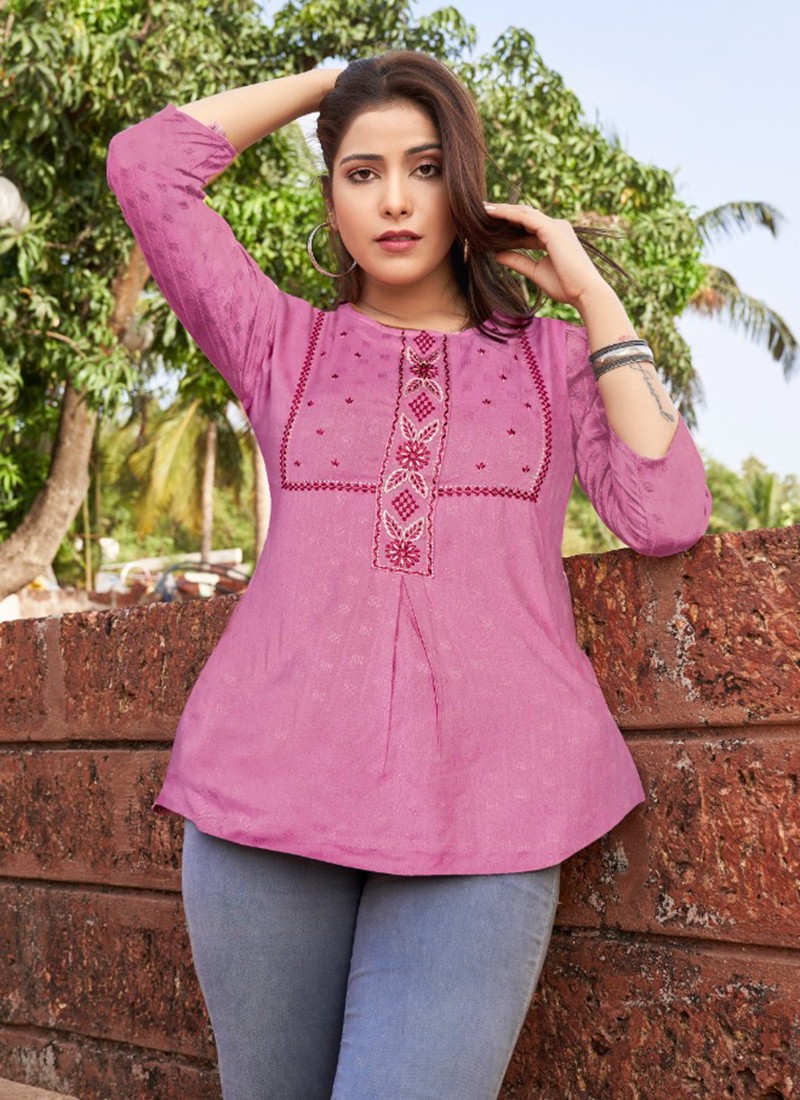 Edge Machine Embroidery Rayon Short Tops Collection