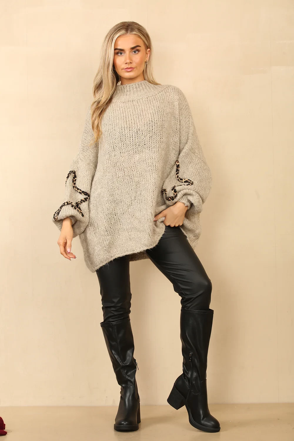 ELISA LEOPARD STAR SLEEVE KNIT JUMPER