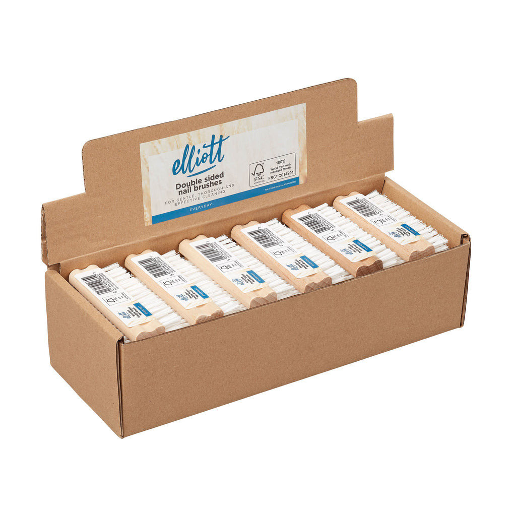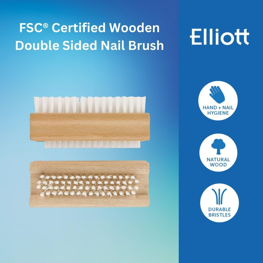 Elliott Wooden Double Sided Nail Brush for Gentle Cleansing is a practical and durable nail care tool designed to keep nails and cuticles clean and healthy. Crafted with a sturdy wooden handle, this brush provides a comfortable grip for precise control during use. It features two sides with different bristle textures: one with soft bristles for gentle cleansing and polishing, and the other with firmer bristles to remove dirt and debris from under the nails. The double-sided design makes it versatile for everyday nail care, ensuring thorough cleaning without damaging the nails or surrounding skin. Ideal for natural and artificial nails, it helps maintain hygiene and promotes stronger, healthier nails. The natural bristles are gentle on the skin yet effective at exfoliating the cuticle area. Compact and lightweight, it is perfect for use at home, in salons, or while traveling. Its eco-friendly wooden handle is sustainable and long-lasting, providing a practical alternative to plastic brushes. Regular use of the brush prevents dirt build-up, strengthens nails, and supports a polished, manicured appearance. Suitable for both hands and feet, it can be used before applying nail treatments, polish, or hand care routines. The gentle bristle side also helps stimulate circulation around the nail bed for healthier growth. Easy to clean and maintain, it ensures hygiene and durability over time. Elliott Wooden Double Sided Nail Brush combines functionality, comfort, and eco-conscious design for effective, gentle nail cleansing every day. ✨
