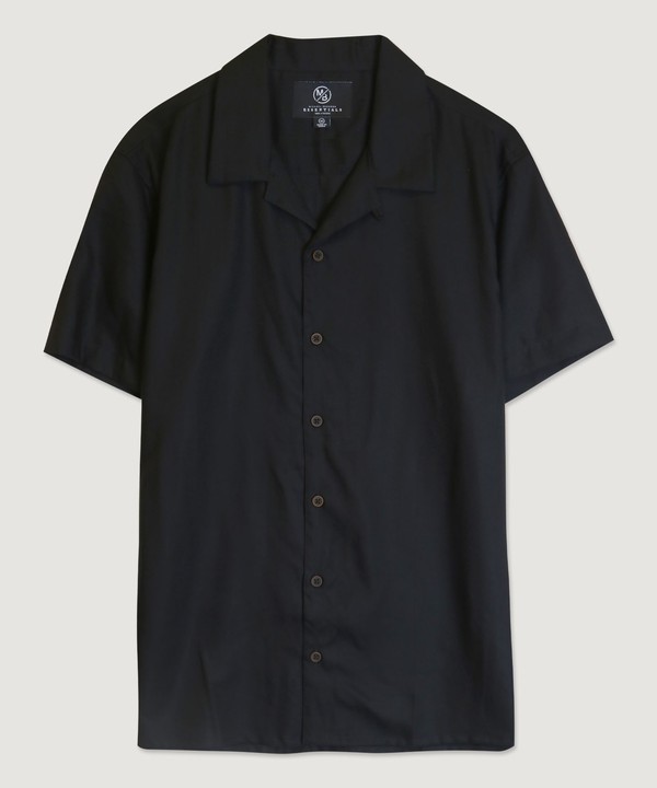 100% VISCOSE S/S SOLID VISCOSE CAMP COLLAR SHORT-SLEEVE SHIRT " Machine wash/line dry