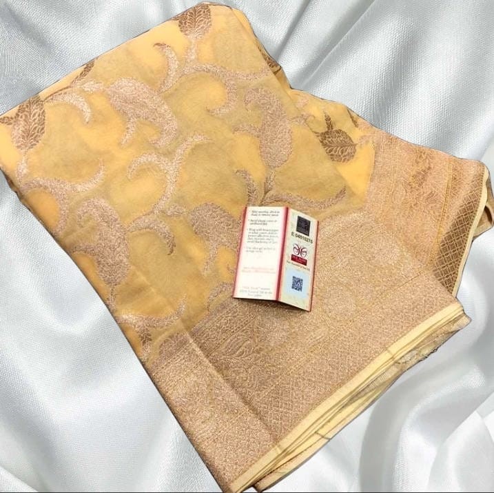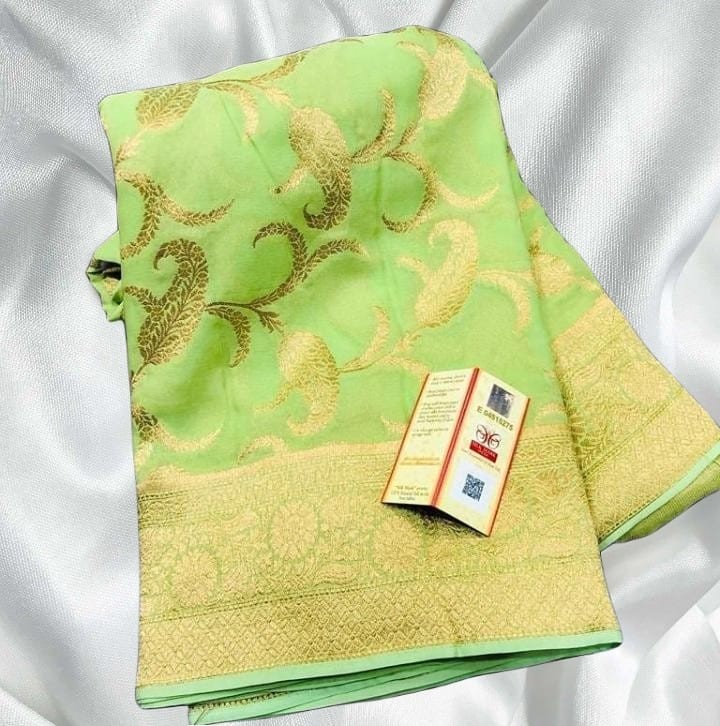 *Banarasi Semi.goergettes daibal silk soft jaldar kairy buti alman watar zari fancy border fancy Colors full body 2day fancy saree contrast rich pallu*