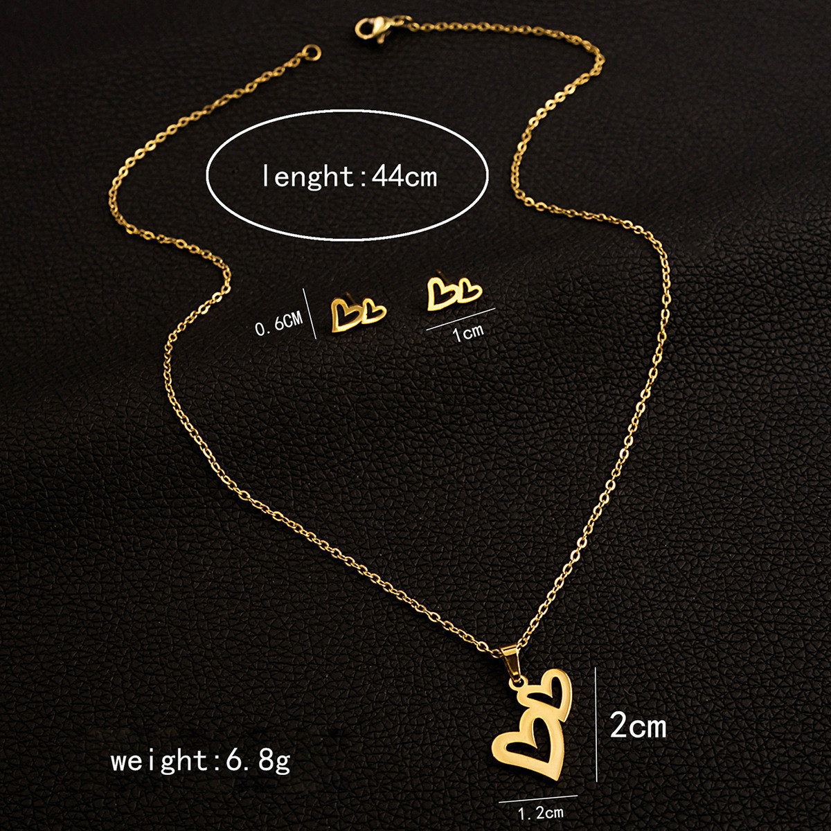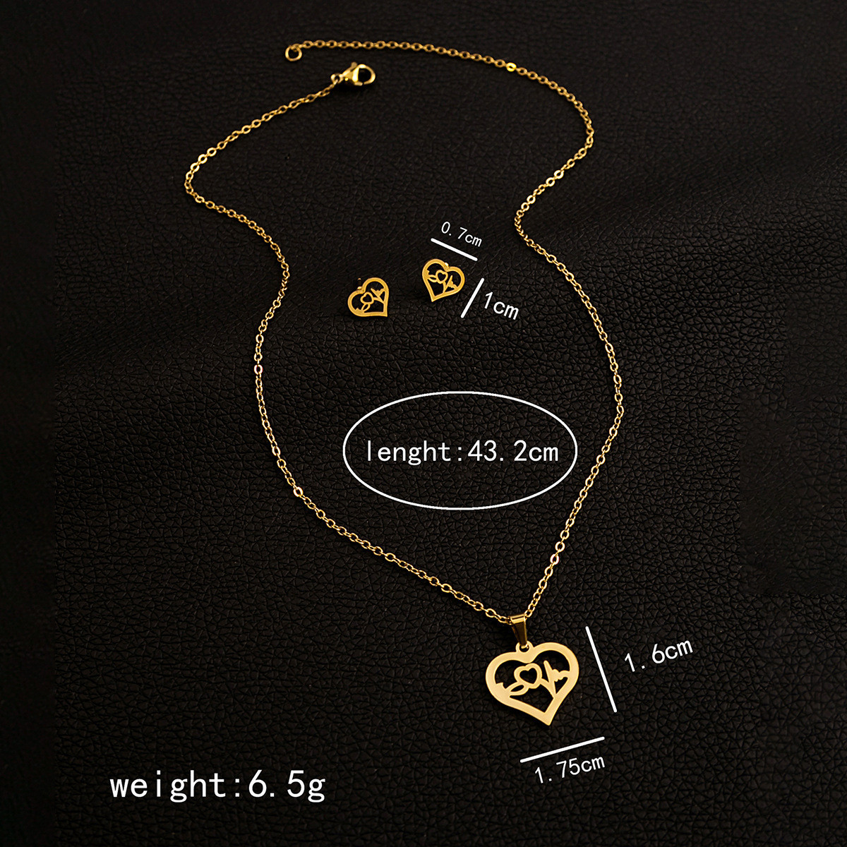 This stylish women’s necklace and earrings set is crafted from high-quality 304 stainless steel, offering durability and long-lasting shine. Designed with an elegant 18K gold plating, it delivers a luxurious finish that complements any outfit. The pendant necklace features a unique combination of geometric wave, mixed stone, and irregular patterns, adding a modern artistic touch. Eye-catching motifs such as the Hamsa hand, heartbeat, heart shape, cross, round evil eye, and rose flower bring symbolic meaning and charm. Its exaggerated and trendy design makes it perfect for fashion-forward individuals. The standard chain ensures a comfortable and secure fit for daily wear. Expert electroplating enhances its resistance to tarnishing and fading. Despite its bold look, the lightweight 16g design makes it easy to wear all day. The intricate detailing reflects fine craftsmanship and attention to style. Suitable for both casual and special occasions, it elevates any look effortlessly. The set pairs beautifully with both western and traditional outfits. Its versatile design allows you to express individuality and personality. The polished surface gives a smooth and refined appearance. Ideal as a gift for loved ones, it adds a touch of elegance and meaning. This fashionable jewelry set is a perfect blend of durability, symbolism, and modern style.