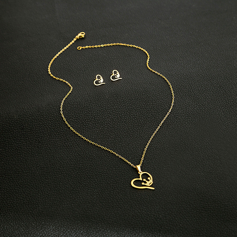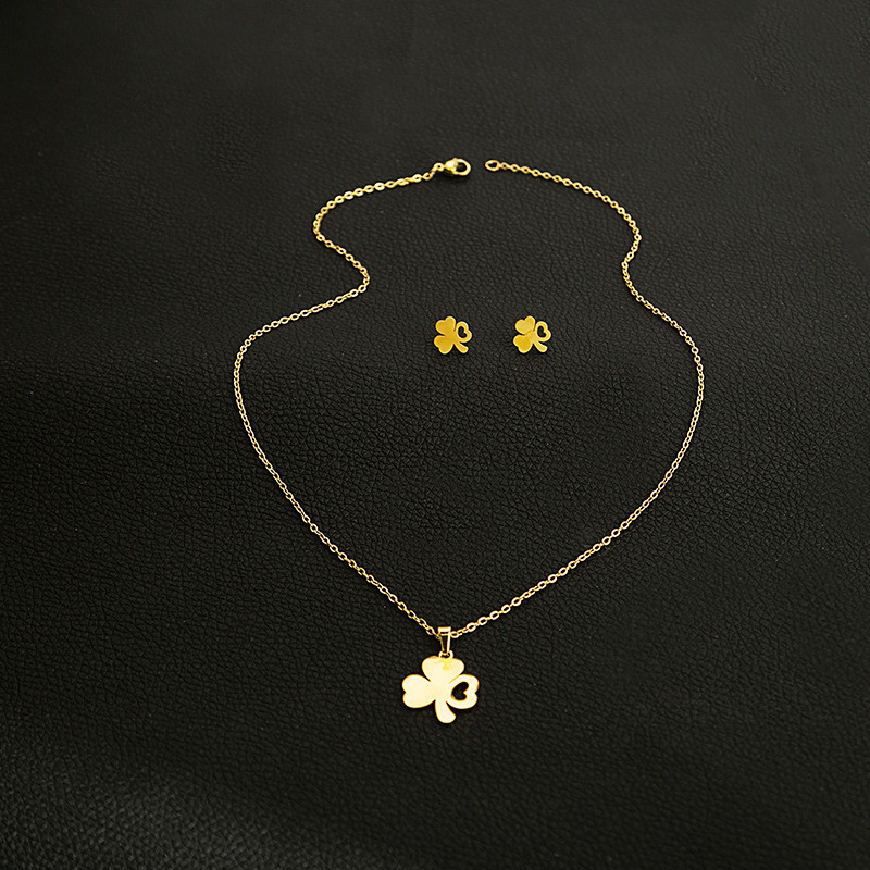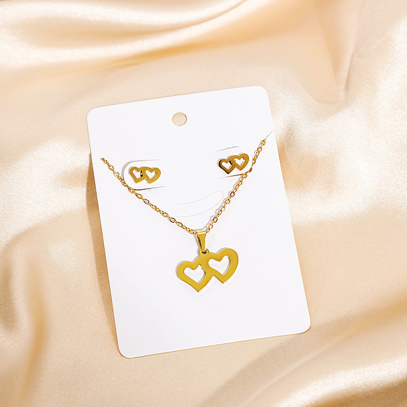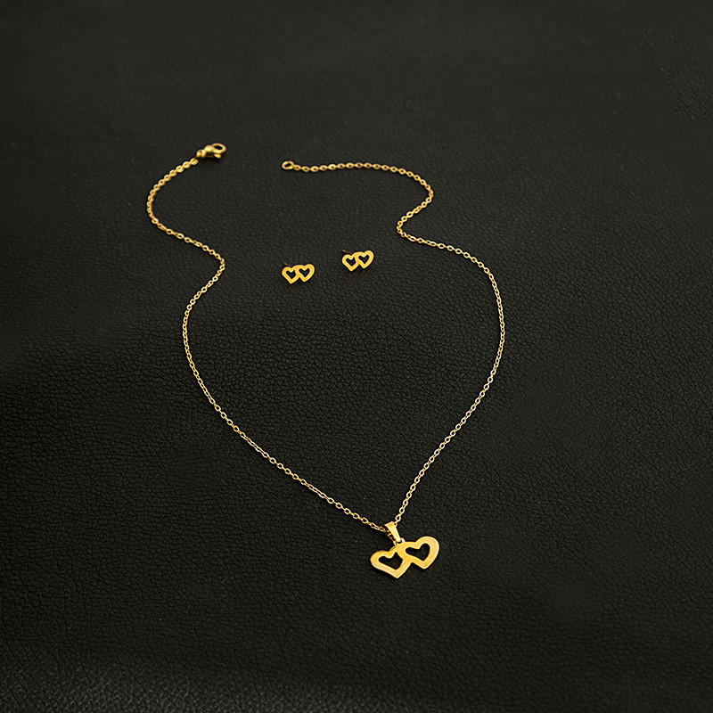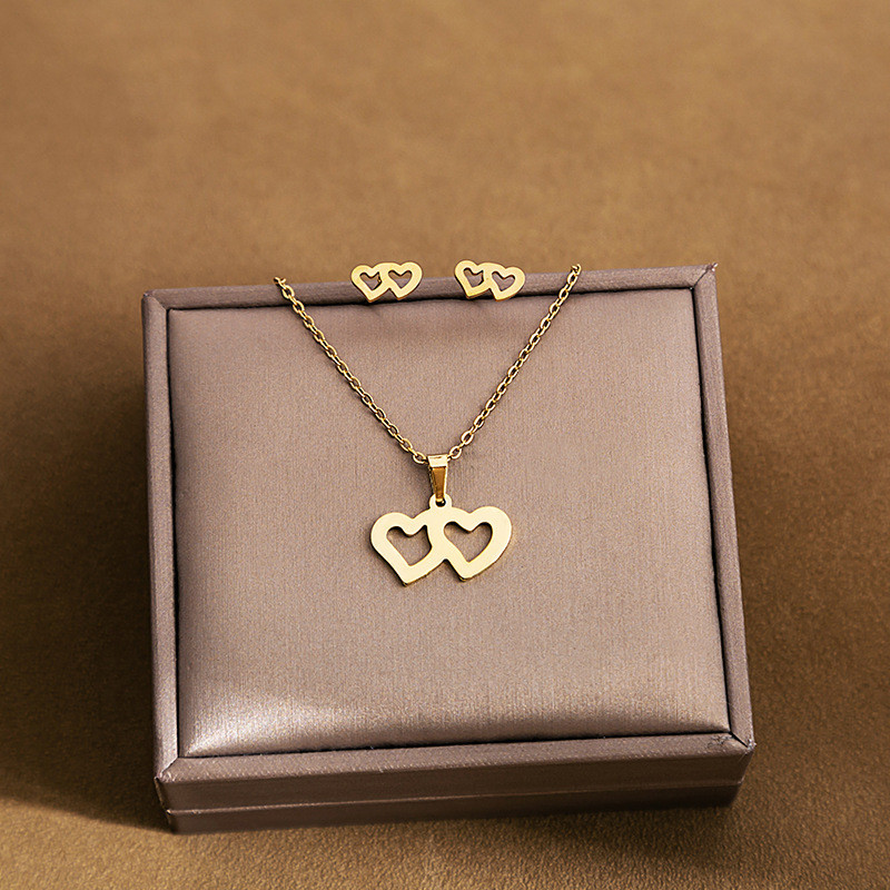 Fashion Jewelry Necklace And Earrings For Women 304 Stainless Steel 18K Gold Plated Hollow Heart Rose Flower Gift (OPT 1)
