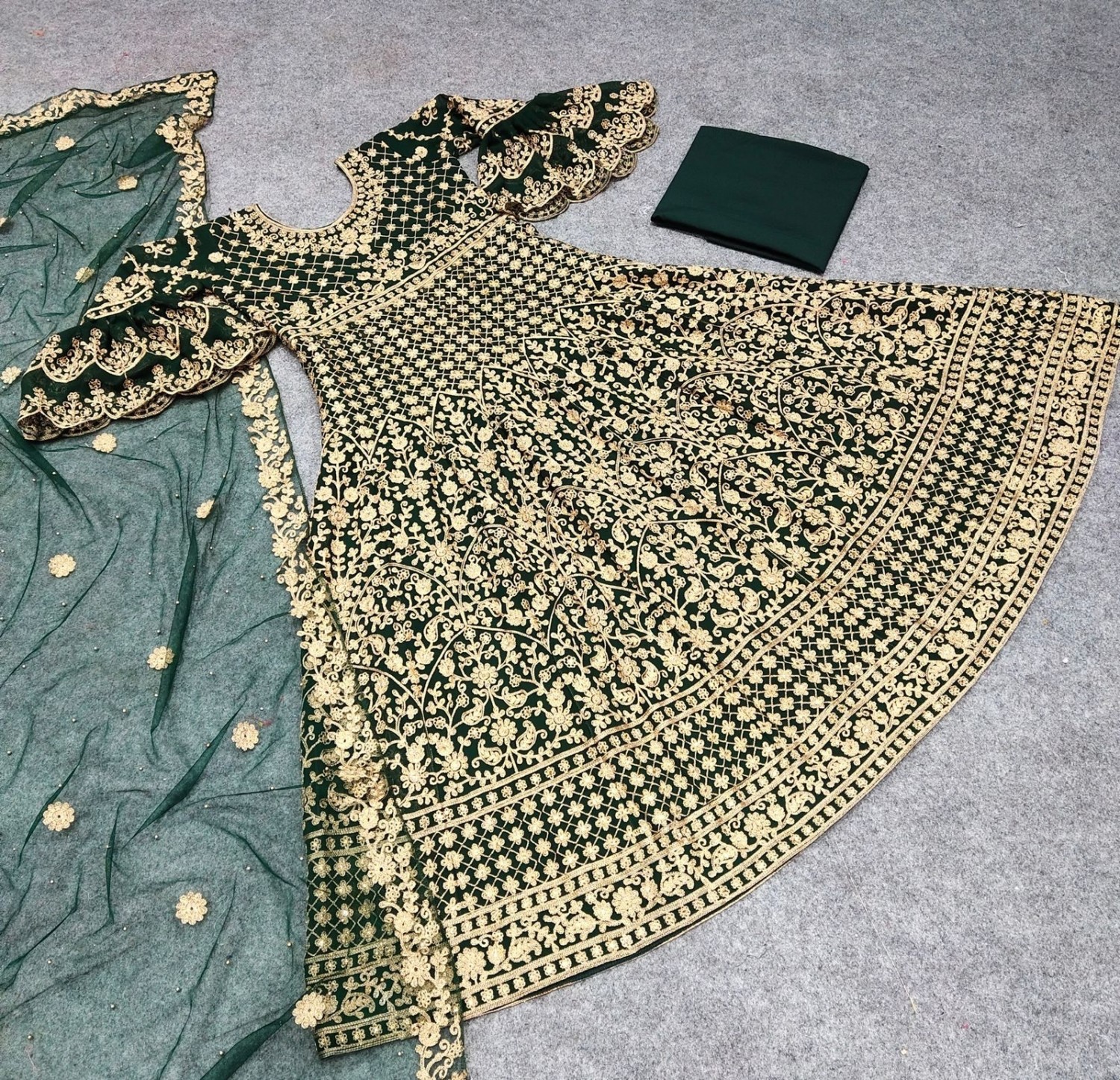 DUPATTA FABRIC : SOFT BUTTERFLY NET WITH EMBROIDERY WORK WITH RIVET MOTI WITH FOUR SIDE EMBROIDERY LACE BODER