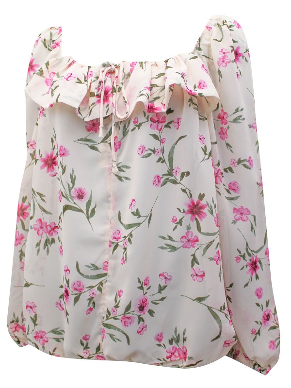 This flattering shape will be the perfect go to blouse in your wardrobe. Featuring a frilled neckline with tie detail and long sleeves with elasticated cuffs. Length 28in.