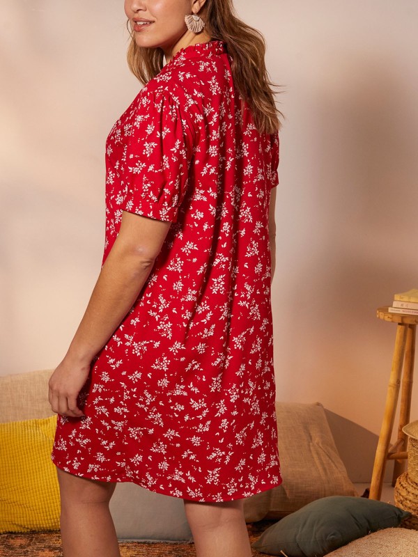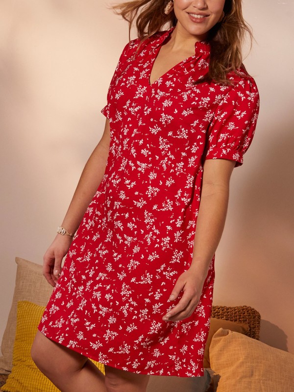 Looking for something light and breezy to wear? This dress is perfect. Comfortable in a woven fabric, it features a notch neckline, short sleeves, and completes with a floral print.