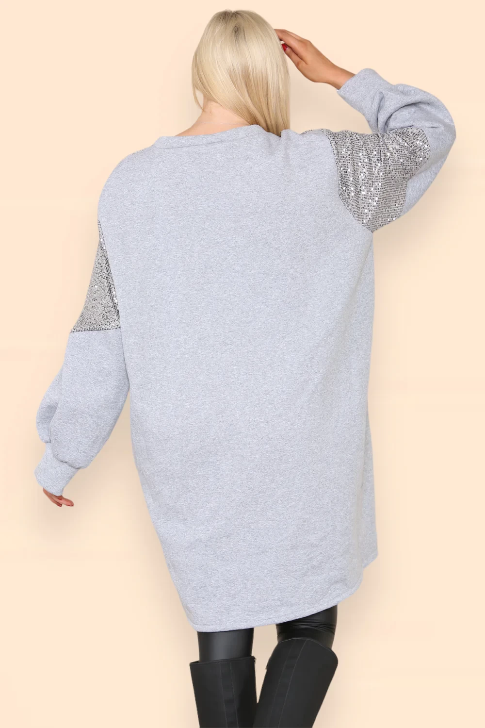 FRONT NECK EMBELLISHED SEQUIN OVERSIZED SWEAT