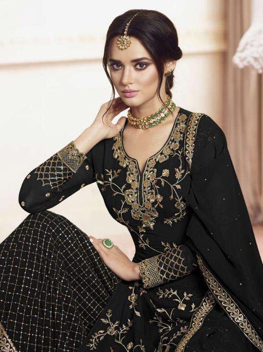 Ready made* Pure Georgette fabrics with heavy embroidery work with sequance work with foil mirror work *Duppata:-* Georgette fabrics with embroidery work with foil mirror work *Bottom:-* Georgette fabrics with embroidery and foil mirror work |