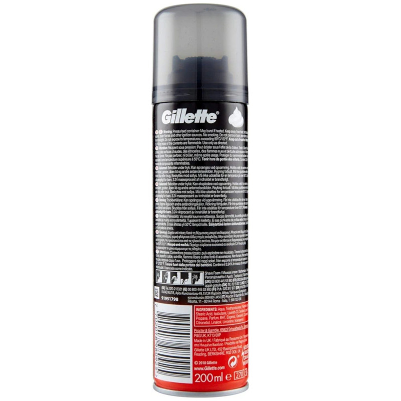 Gillette Shave Foam Regular 200ml is designed to provide a smooth and comfortable shaving experience while protecting the skin from irritation. Its rich, creamy foam spreads easily across the face, helping to soften facial hair for a closer and more efficient shave. The lightweight formula creates a protective cushion between the razor and the skin, reducing friction and minimizing the risk of cuts, nicks, and razor burn. It enhances razor glide, allowing the blade to move smoothly for precise and effortless shaving. The moisturizing ingredients help keep the skin hydrated and comfortable throughout the shaving process. Suitable for everyday use, it supports a quick and effective grooming routine. The foam rinses off easily without leaving residue, leaving the skin feeling clean and refreshed. Its dermatologically tested formula is gentle enough for most skin types. The convenient 200ml can provides long-lasting use and easy dispensing. Ideal for use with all types of manual razors. Helps achieve a neat, smooth, and well-groomed appearance after every shave. The formula helps maintain skin softness while preventing dryness. Compact and travel-friendly packaging makes it convenient for use at home or on the go. Perfect for men who want a reliable and classic shaving foam for daily grooming. Gillette Shave Foam Regular 200ml combines comfort, protection, and smooth performance for an easy and refreshing shaving experience. ✨