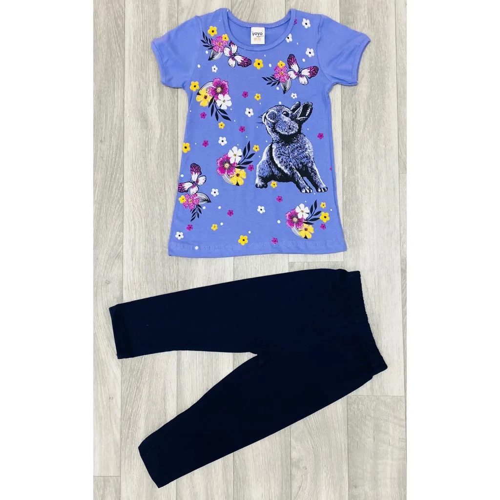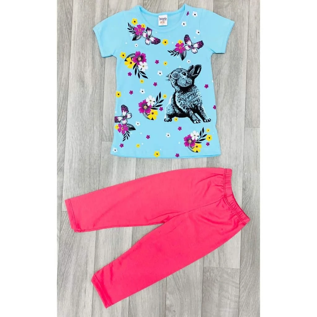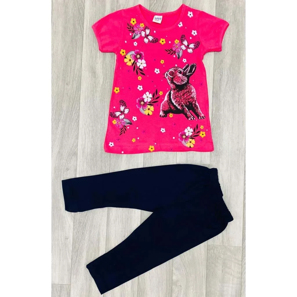 Girls Floral Bunny Rabbit Print Dress and Leggings Set (3-6Y)