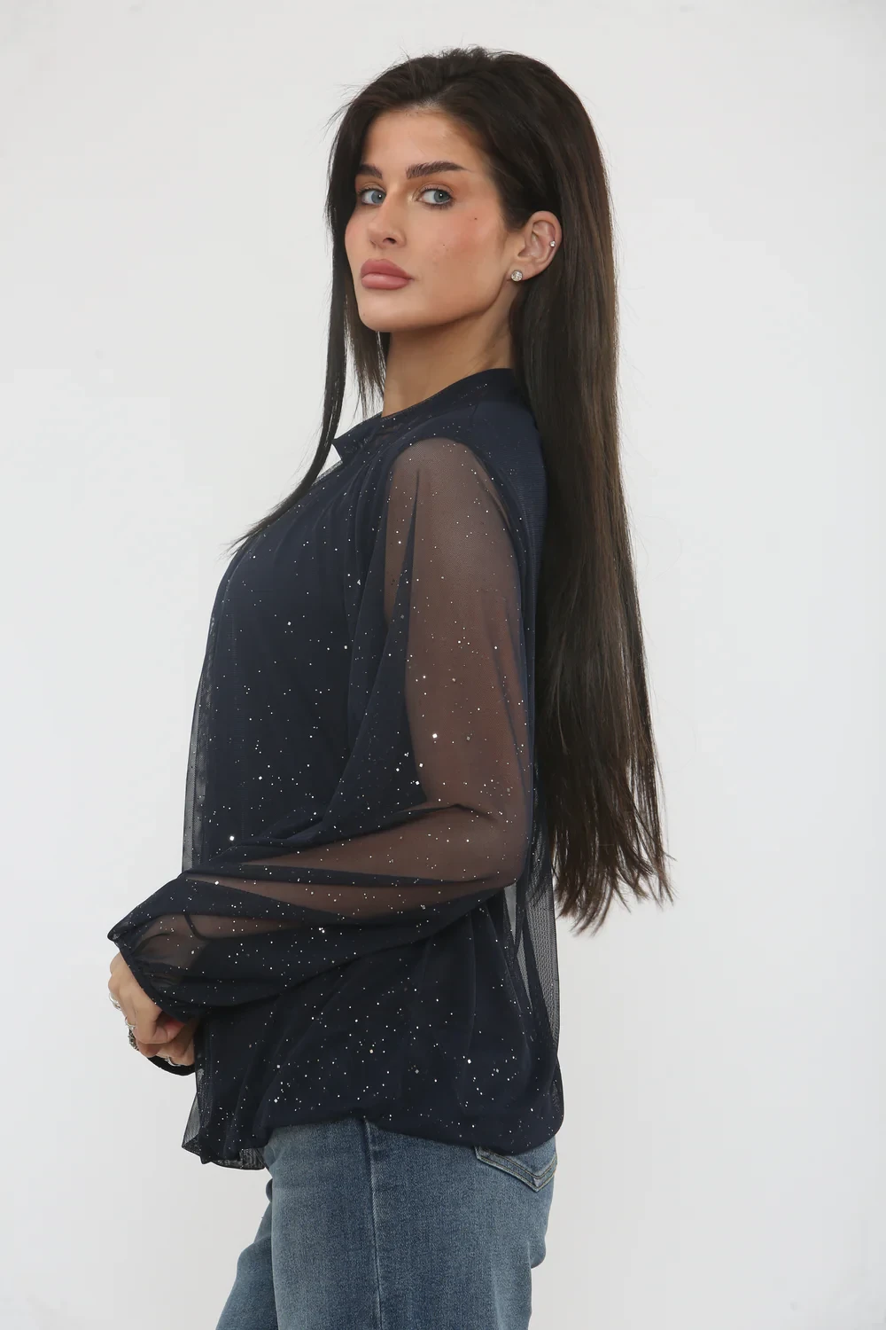 GLITTER MOCK NECK TOP