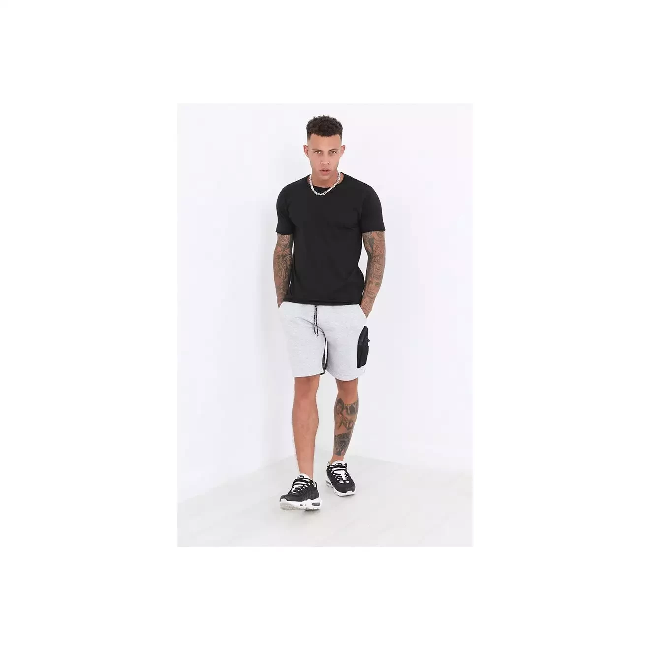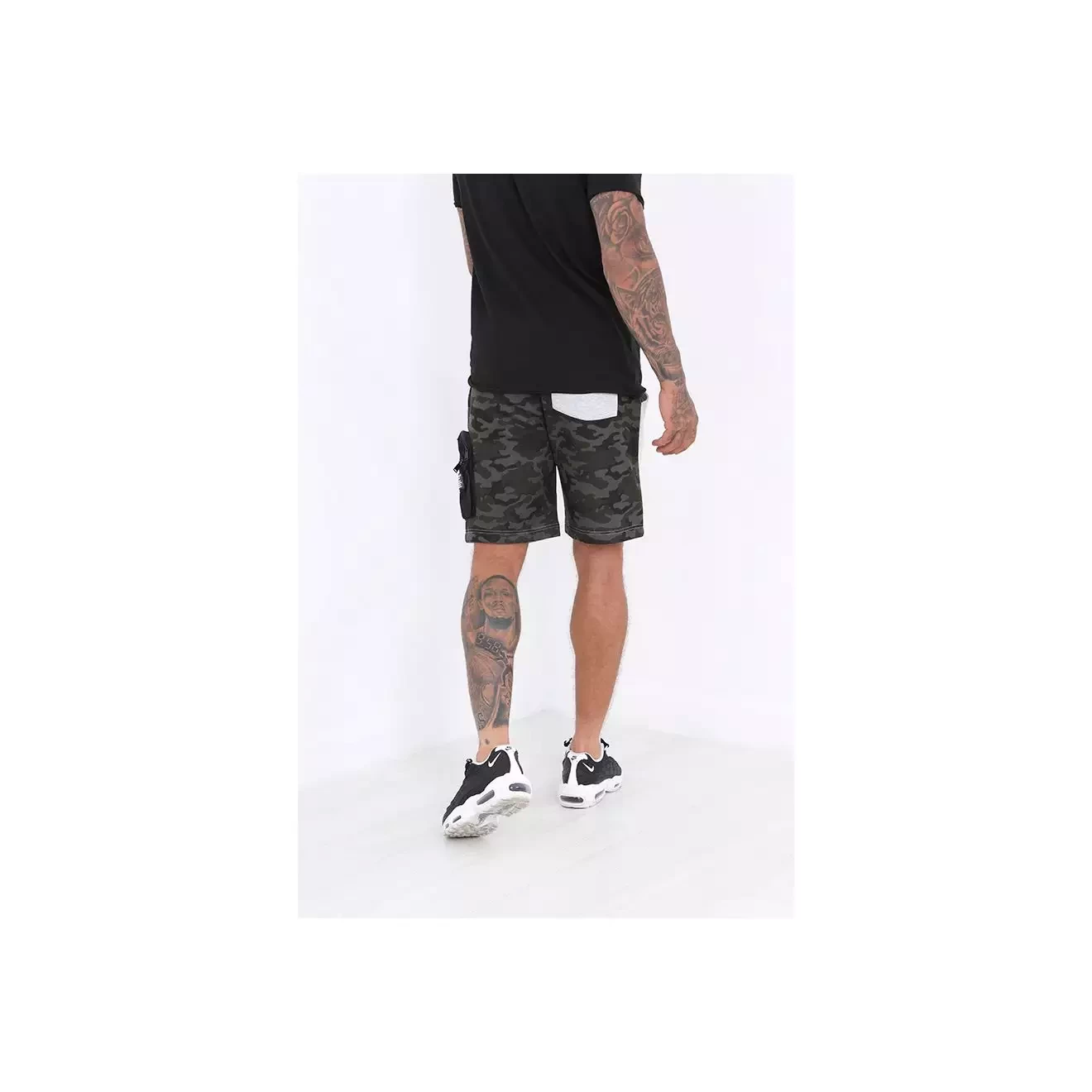Grey printed comouflage zip pocket detail shorts