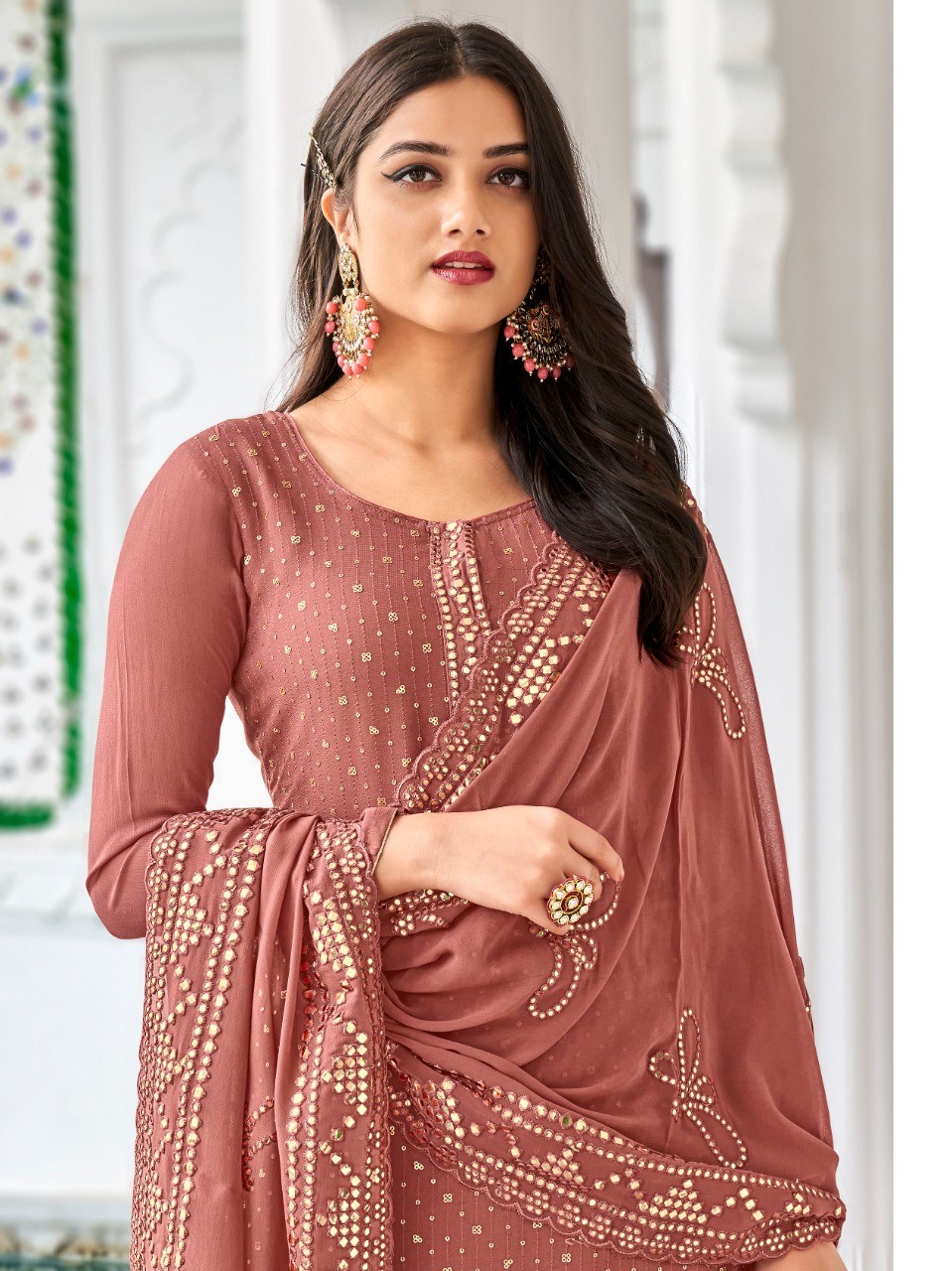 Heavy embroidery work with sequance work with foil mirror work kurti