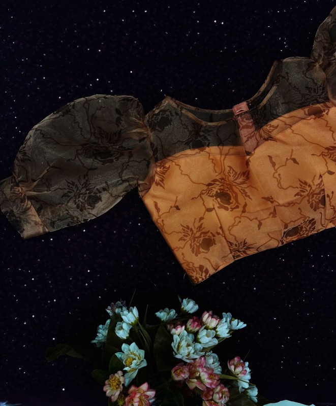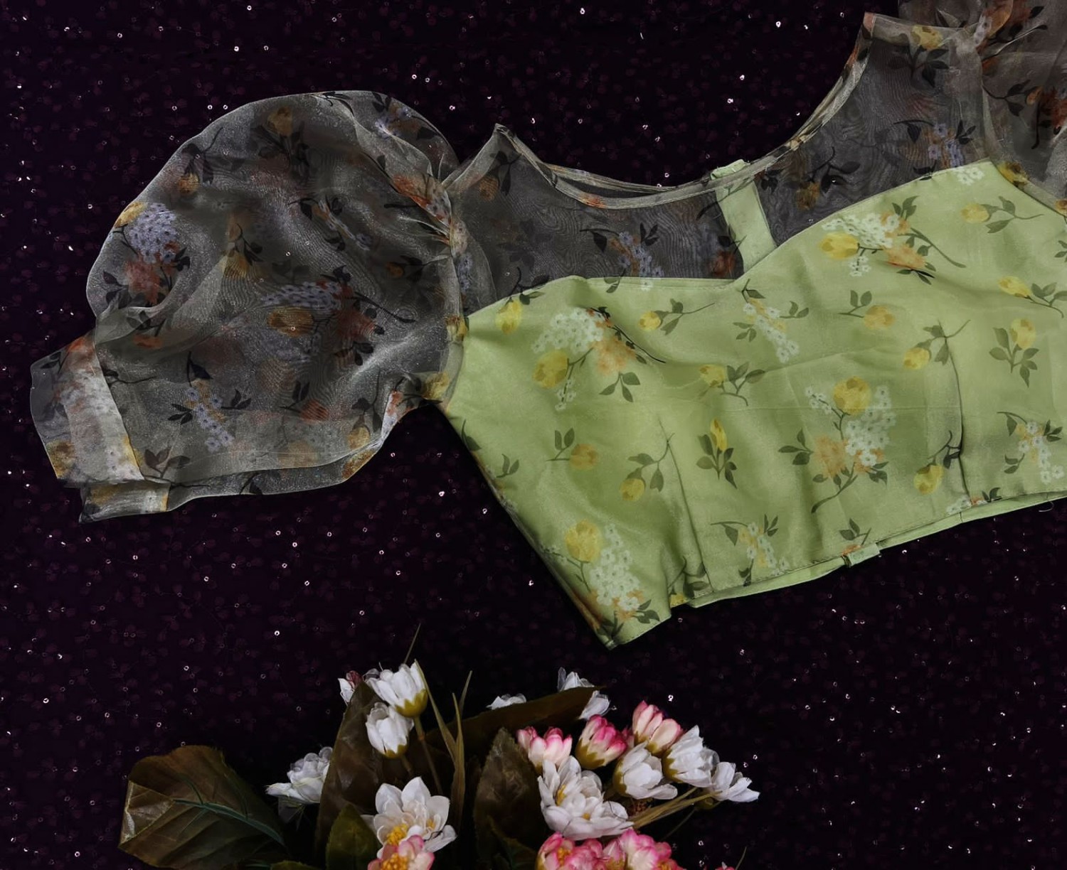 Fabric : pure organza with heavy rich digital print with princess style and balloon sleeved