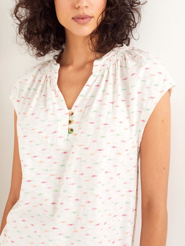 printed tee made from 100% cotton with a notched neck - with details aplenty, it's top notch. Length 24in.Material: 100% Cotton