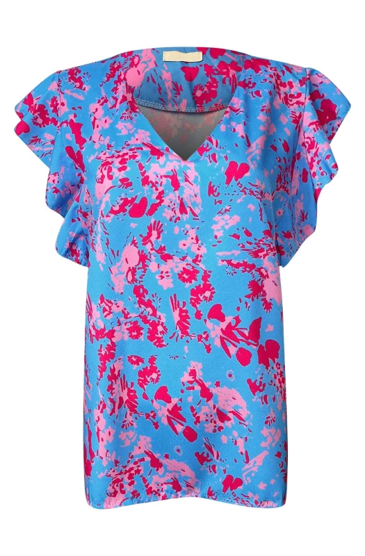 All over multicoloured abstract print with front 'V' cut neckline