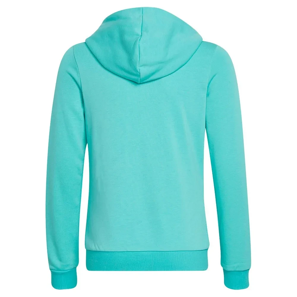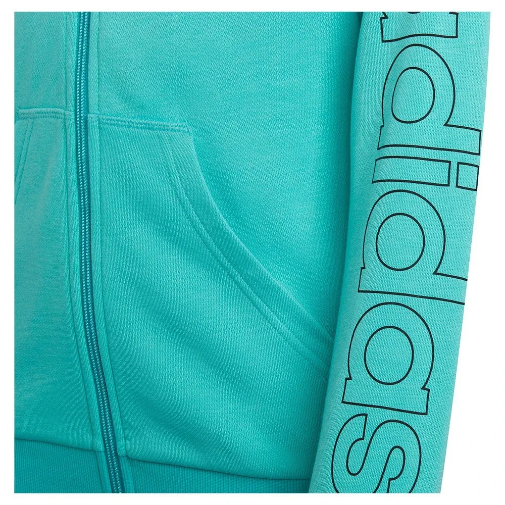 The Junior Adidas ‘Linear’ Full Zip Hoodie is a stylish and comfortable essential designed for active kids who love sporty fashion. Made from soft, high-quality fabric, it provides warmth and all-day comfort for school, play, or casual outings. The hoodie features a bold Adidas logo on the front chest, delivering iconic brand appeal. A large linear Adidas logo running down one sleeve adds a standout, athletic look. The full zip fastening allows easy wear and adjustable ventilation. Two front pockets offer practical space to keep hands warm or store small essentials. The attached hood provides extra coverage during cooler weather. Ribbed cuffs and hem ensure a secure fit while helping maintain shape. Its regular fit offers freedom of movement without feeling restrictive. Lightweight yet durable, it is perfect for everyday wear. The breathable material keeps juniors comfortable throughout the day. Easy to pair with joggers, jeans, or shorts for a sporty outfit. Strong stitching enhances durability for active lifestyles. Ideal for sports practice, travel, or relaxed weekends. The Junior Adidas ‘Linear’ hoodie combines comfort, functionality, and bold branding in one versatile wardrobe staple.