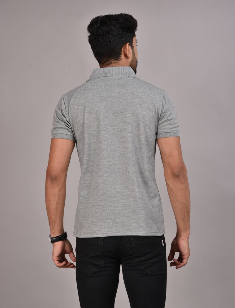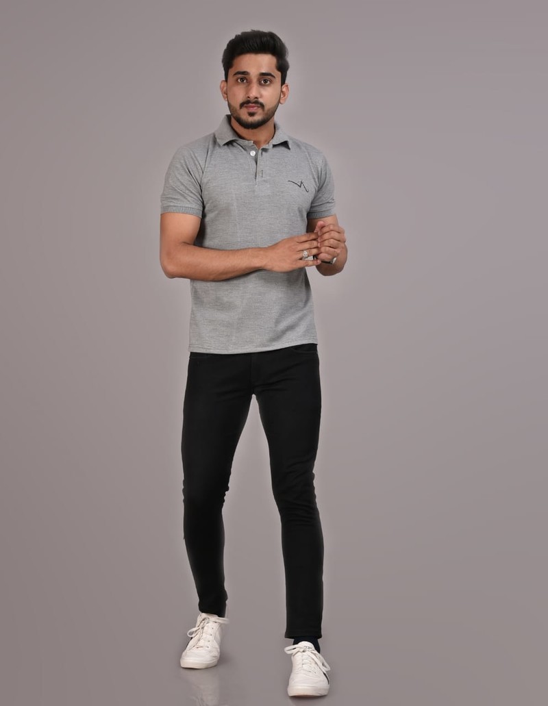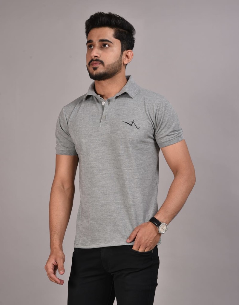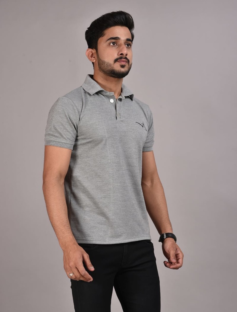 Gray contrast colour cuff and embroidery detail t-shirt