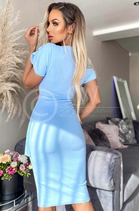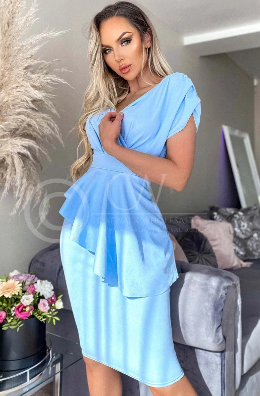 KARA PEPLUM MIDI BODYCON DRESS-SKY BLUE