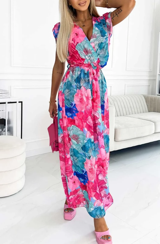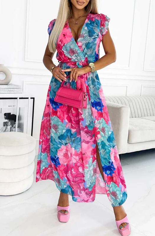 Low cut open front wrap 'V' neckline with elasticated waistband
