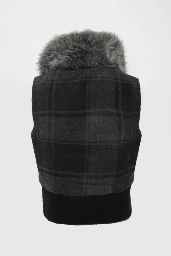 Kids Fur Collar Checked Sleeveless Bomber