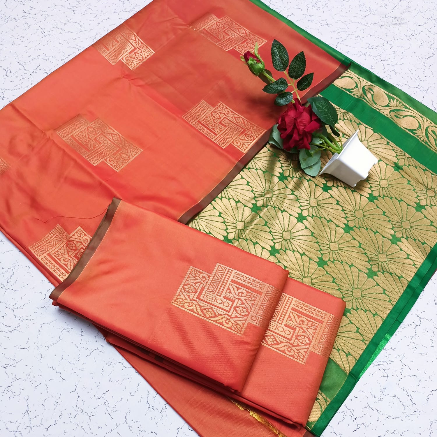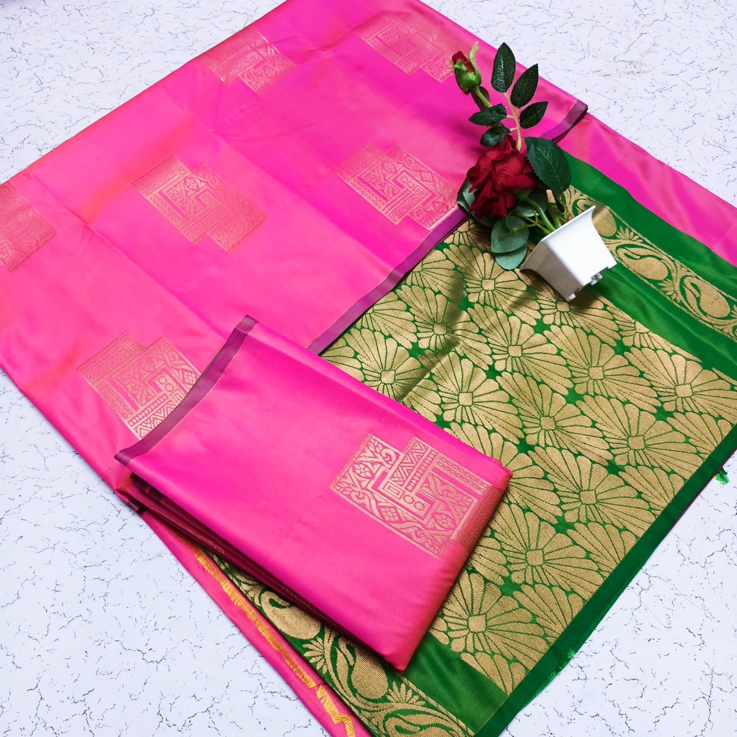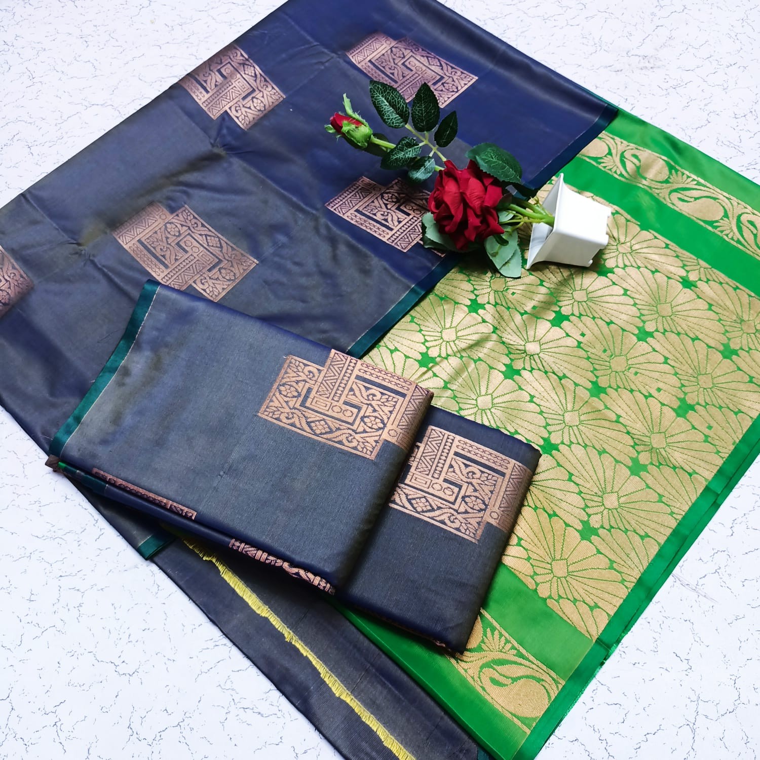 *Saree with Contrast Design Blouse*