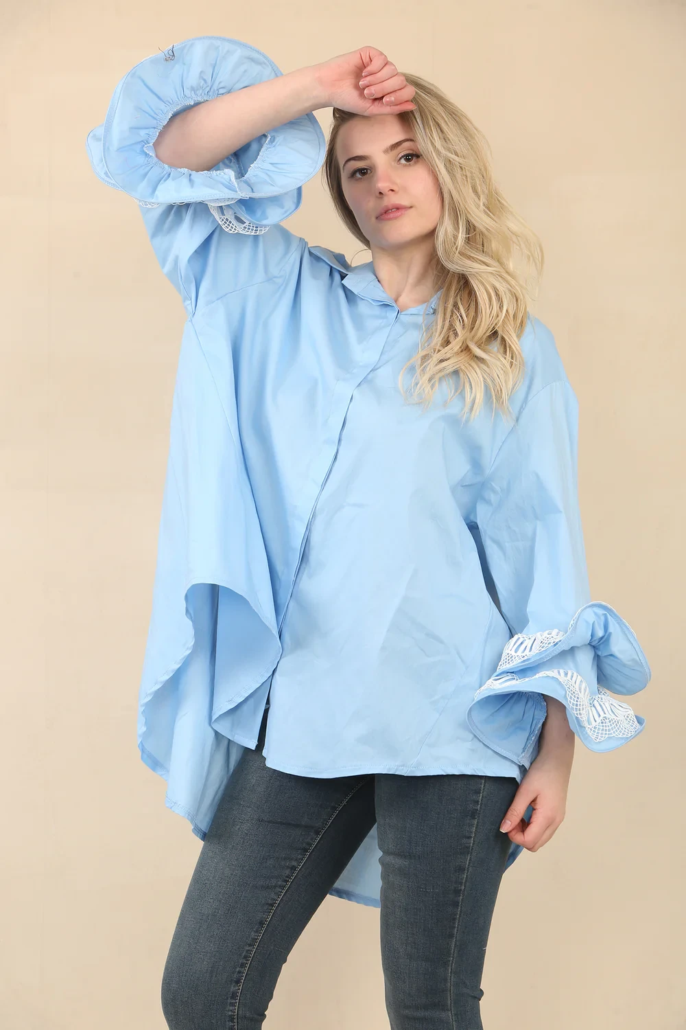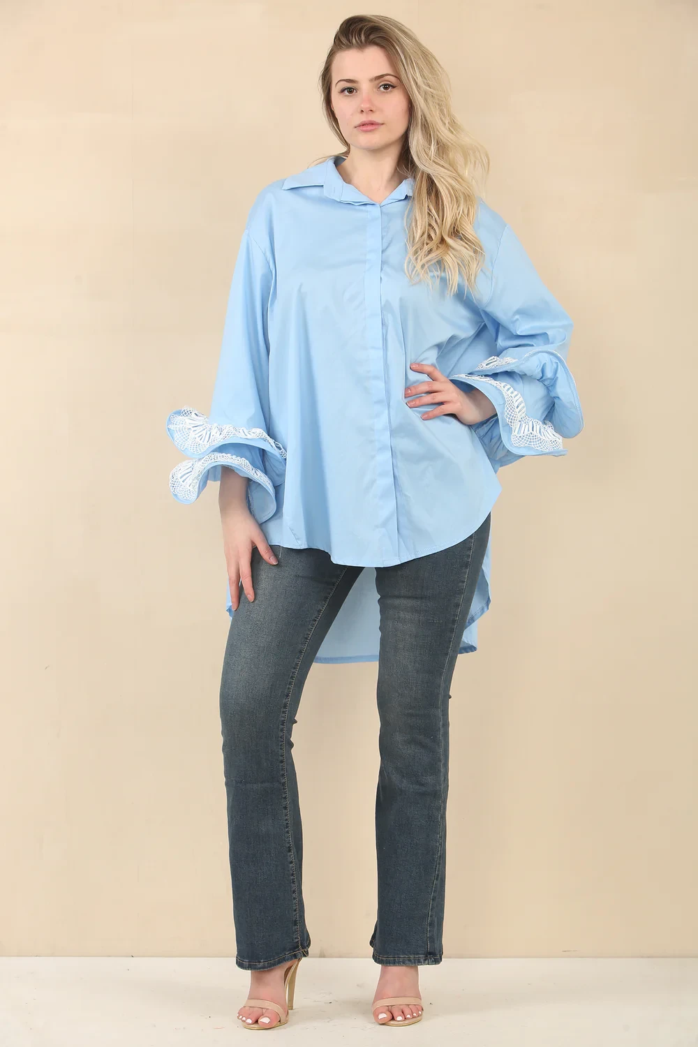 LACE RARA SLEEVE HIGH LOW SHIRT
