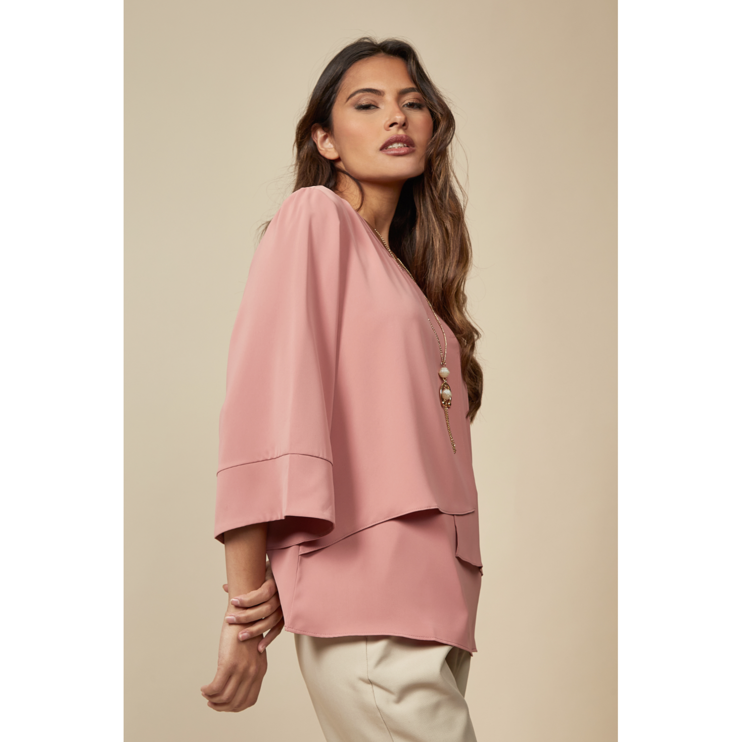 Cosy and Comfy Relaxed and roomy Sheer Detail Spring-Summer Tops Spring-Summer Look Oversized Tops 3/4 Sleeves Layered Tops Layered Blouse Pink Tops Pink Blouse Oversized Fit Size 18 Workwear Blouse Bridesmaid Wedding Guest Plus Size Perfect Tops for Summer Weekends Summer Garden Parties