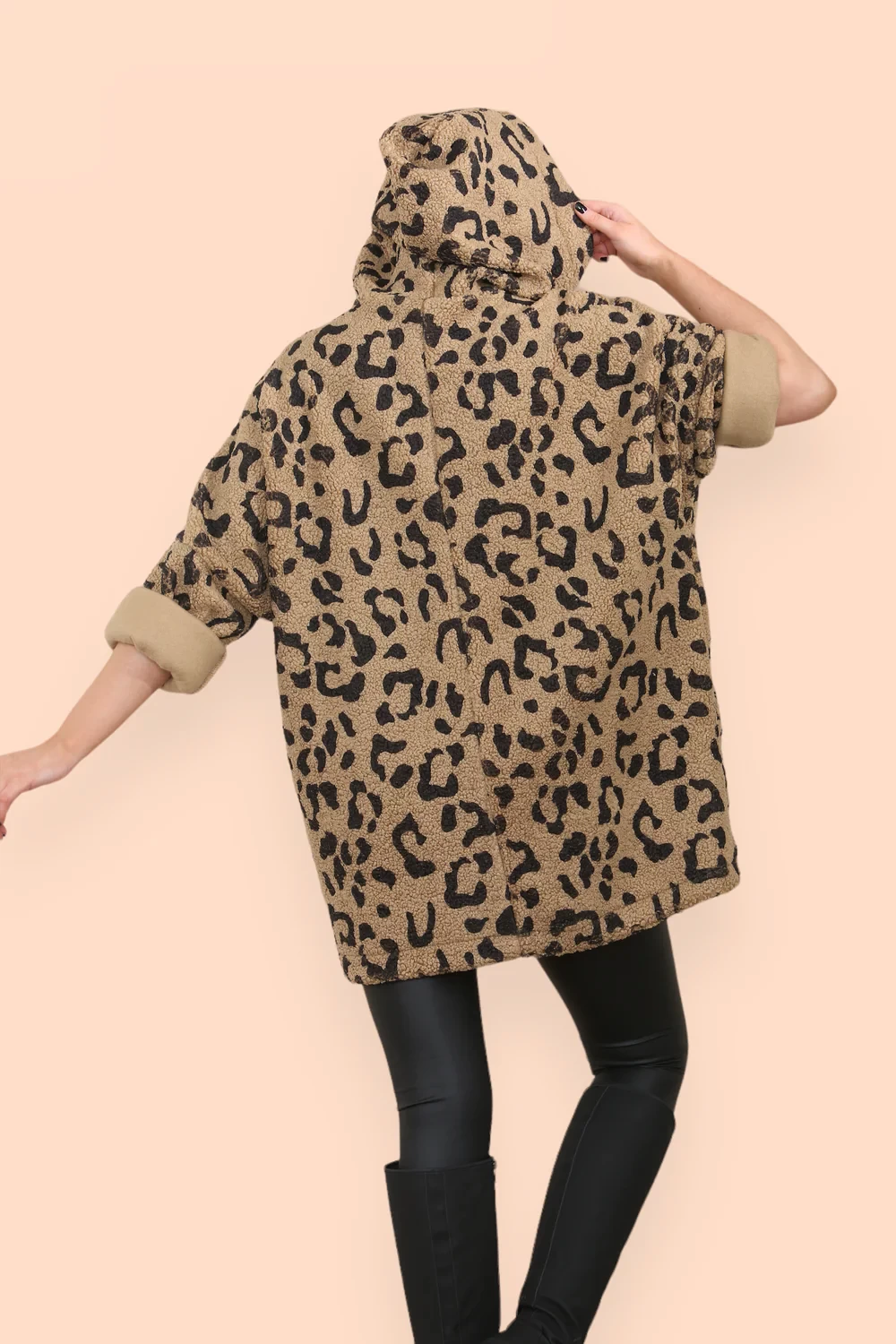 LEOPARD TEDDY POCKET HOODIE