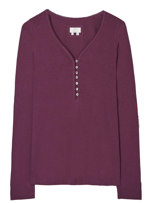 Supersoft, snug and perfect for everything from lazy days to cosy nights, this long sleeve henley features beautiful trims for a pretty look. It's made with a supersoft and breathable cotton and comes in a comfortable fit. Length 24in.