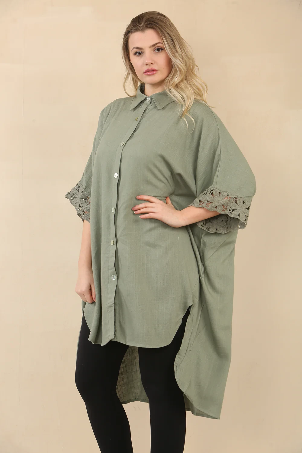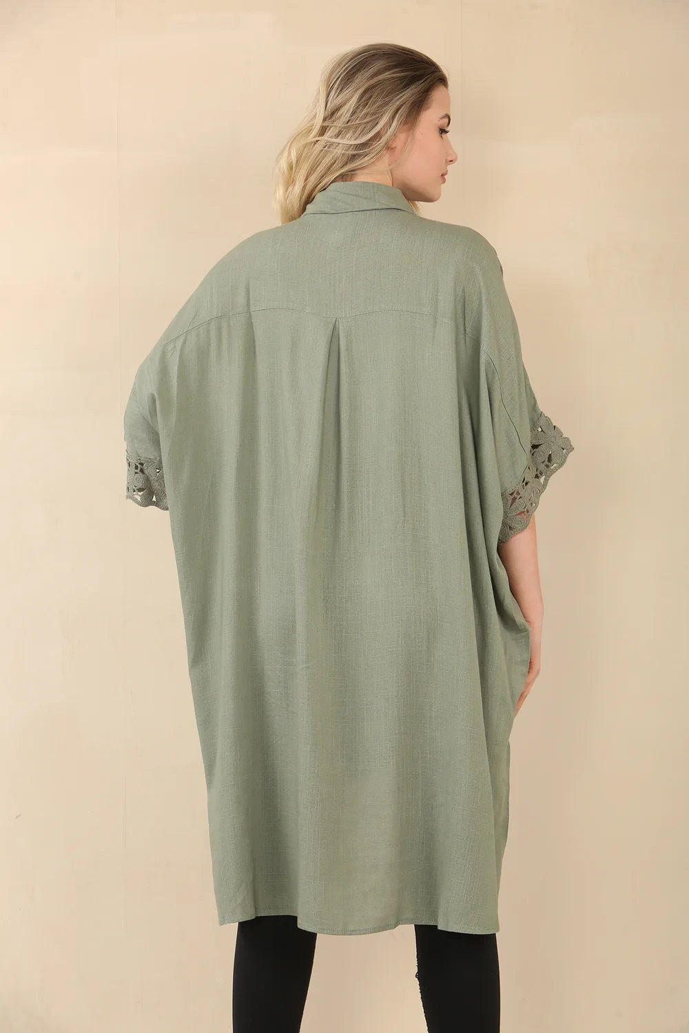 LINEN CROCHET SLEEVE SHIRT