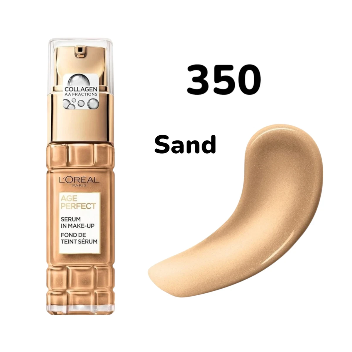 L’Oréal Age Perfect Serum Foundation 30ml – 350 Sand is a hydrating and lightweight foundation designed to provide a radiant, youthful complexion with natural medium coverage. Its serum‑infused formula combines the skincare benefits of a serum with the coverage of a foundation, helping to nourish and improve the look of mature skin while creating an even skin tone. Shade 350 Sand is ideal for medium to tan skin tones, blending seamlessly to create a smooth and balanced finish. The silky texture glides effortlessly onto the skin, allowing for easy application with fingers, brushes, or makeup sponges. Enriched with hydrating ingredients such as glycerin and fruit extracts, it helps moisturise and soothe the skin while providing a soft, luminous glow. Its formula helps blur fine lines and imperfections, giving the complexion a renewed, radiant appearance. Designed for comfortable long wear, the foundation feels lightweight and breathable on the skin without settling into lines or creases. The buildable coverage allows you to customise your look from natural to more polished, depending on your needs. It helps enhance skin luminosity while maintaining a fresh, hydrated finish throughout the day. Suitable for normal, dry, or mature skin types, especially those seeking added hydration and glow. The compact 30ml size makes it convenient for everyday use or travel. The foundation works beautifully alone or paired with concealer for a flawless complexion. L’Oréal Age Perfect Serum Foundation 350 Sand delivers a youthful, glowing finish with nourishing skincare benefits in one elegant formula. ✨