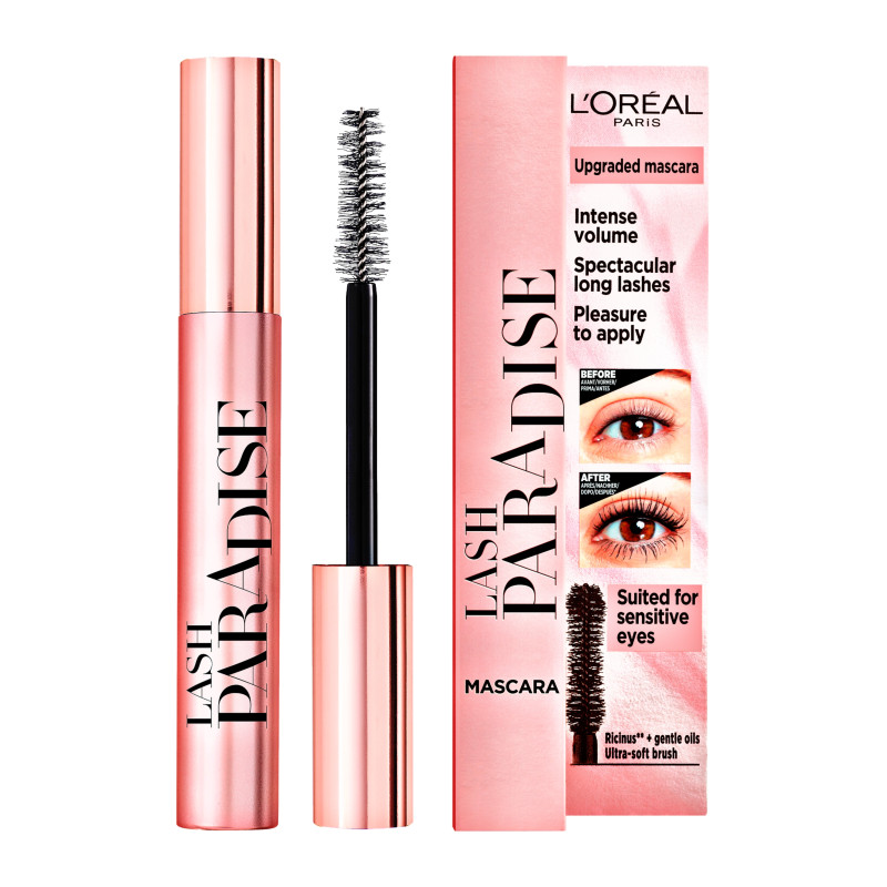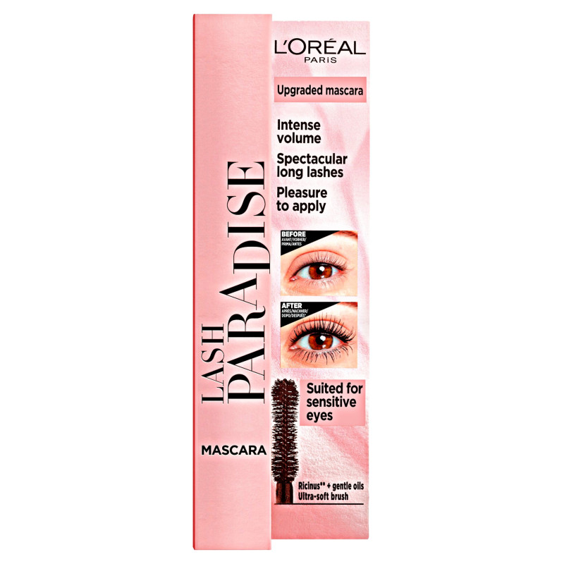 L'Oréal Lash Paradise Mascara in Black delivers voluptuous volume and intense length for a full, feathery lash look. With its ultra-soft, wavy bristle brush, it coats every lash from root to tip with silky, high-impact pigment. The deep black formula instantly intensifies your eyes for a bold, dramatic finish.
