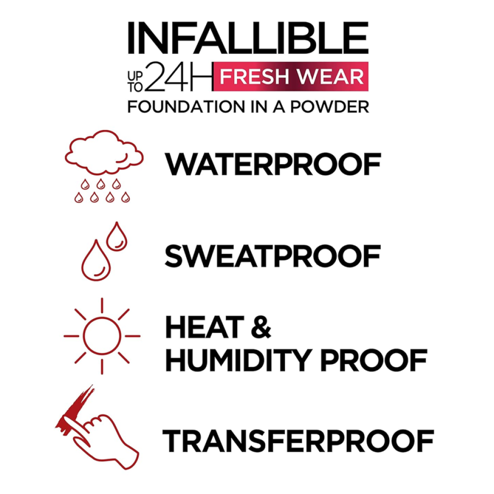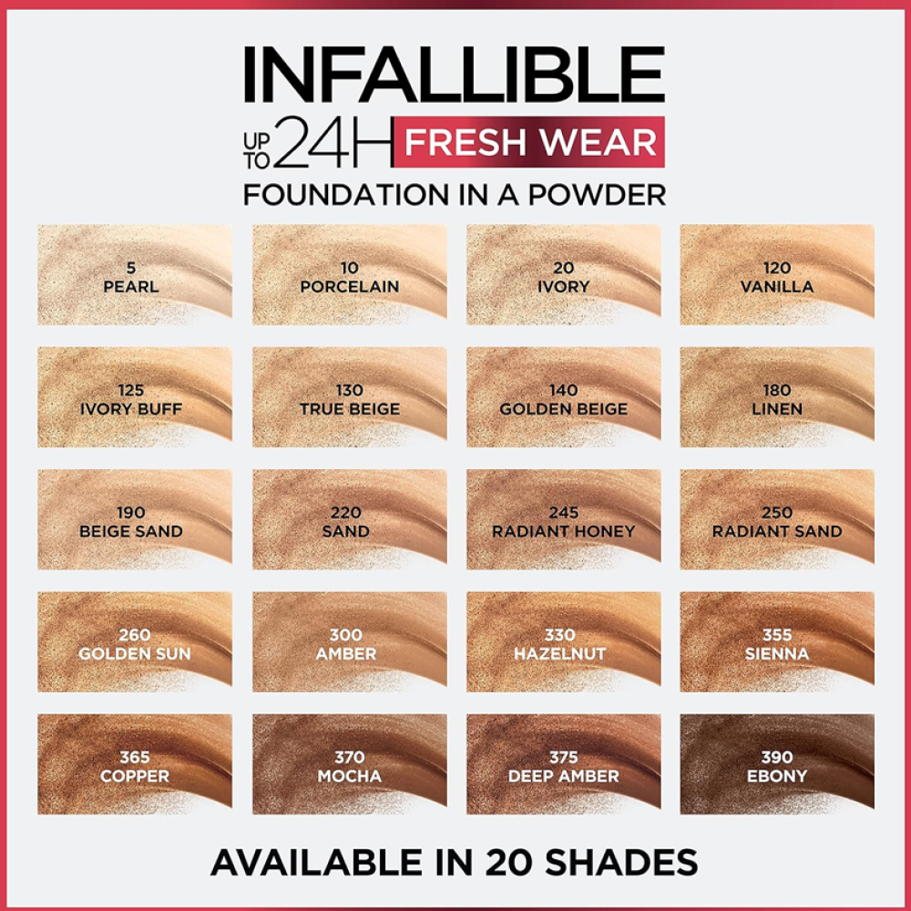 The L'Oréal Paris Infaillible 24H Fresh Wear Foundation - 220 Neutral is a high-performance liquid foundation designed to provide long-lasting coverage with a natural, fresh-looking finish. Its lightweight, breathable formula allows the skin to feel comfortable while maintaining a flawless appearance throughout the day. The shade 220 Neutral is ideal for light to medium skin tones with balanced undertones, blending seamlessly for a natural match. This foundation offers medium to full buildable coverage, effectively concealing imperfections, redness, and uneven skin tone. Infused with breathable-skin technology, it ensures a non-cakey and non-mask-like finish that looks like real skin. The formula is designed to be waterproof, sweat-resistant, and transfer-resistant, making it perfect for long wear and humid conditions �. It glides smoothly onto the skin and blends effortlessly using a brush, sponge, or fingertips. The ultra-thin texture provides even application without settling into fine lines or pores. Enriched with oil-absorbing ingredients, it helps control shine while maintaining a healthy glow. The long-wear formula keeps makeup looking fresh for up to 24 hours without fading or dullness �. Suitable for all skin types, including sensitive skin, it is non-comedogenic and allows the skin to breathe comfortably. It layers well with other makeup products, creating a smooth base for a complete look. The foundation also helps maintain color true-to-tone throughout the day without oxidation. Compact and travel-friendly packaging makes it convenient for daily use and touch-ups. Ideal for both everyday wear and special occasions, it delivers reliable performance and a polished finish. Overall, it provides a fresh, long-lasting, and naturally flawless complexion with a lightweight feel.