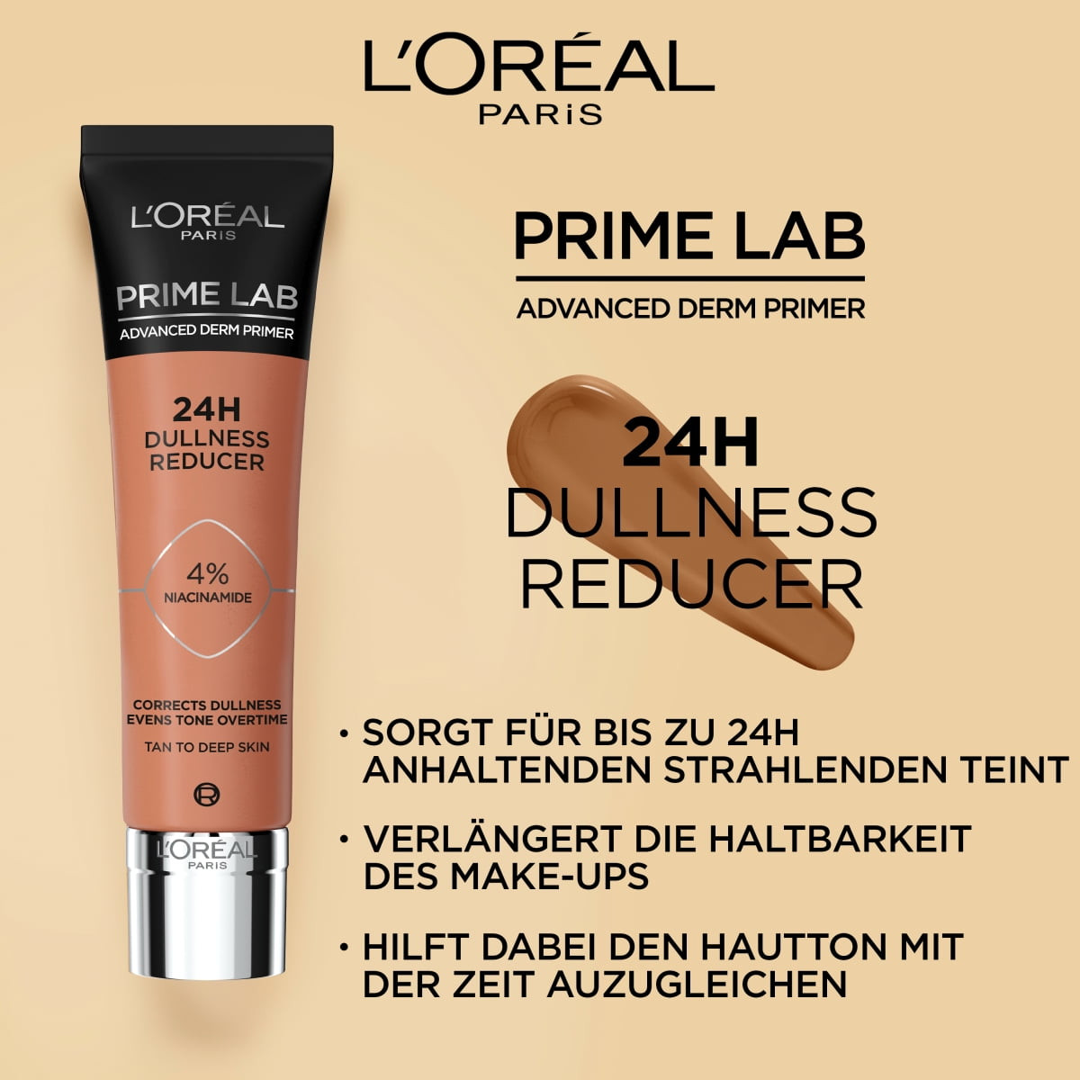 L’Oreal Paris Prime Lab 24HR Primer 30ml – Dulness Reducer is a lightweight, high-performance primer designed to revive tired, dull-looking skin while creating a smooth canvas for makeup application. Its silky, fast-absorbing formula helps reduce dullness and uneven texture, giving the complexion a natural, healthy glow. Enriched with nourishing ingredients and light-reflecting pigments, the primer instantly brightens the skin and enhances radiance. The smooth texture glides effortlessly across the face, minimizing the appearance of pores and fine lines for a flawless base. It helps makeup apply more evenly and improves its longevity, keeping your foundation fresh and vibrant for up to 24 hours. The primer can be worn alone for a subtle glow or under foundation for a polished, radiant finish. Its lightweight, non-greasy formula ensures comfortable wear throughout the day without clogging pores. Suitable for all skin types, including normal, combination, and dull skin. The gentle texture allows for easy blending with fingertips or brushes for precision application. Compact 30ml packaging makes it travel-friendly and convenient for everyday use. The formula supports long-lasting hydration while improving skin texture and luminosity. It enhances the appearance of tired skin, leaving it looking fresh, awake, and revitalized. L’Oreal Paris Prime Lab 24HR Primer – Dulness Reducer delivers brightening, smoothing, and long-wear benefits in one essential product. ✨