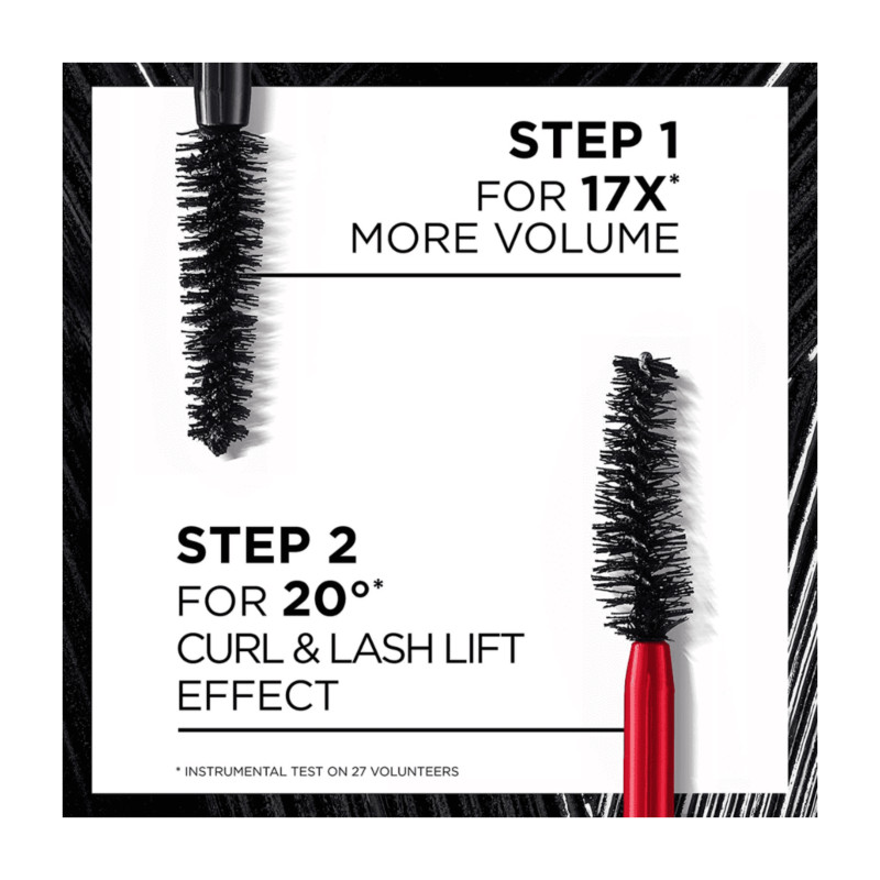 L'Oréal Paris Pro XXL Lift Volume Mascara in Black delivers salon-inspired lash lift and volume in two easy steps. Inspired by professional lash-lifting treatments, it instantly lifts, curls, and volumizes for a wide-eyed, eye-opening effect. The rich black pigment intensifies your lashes with bold, dramatic impact.