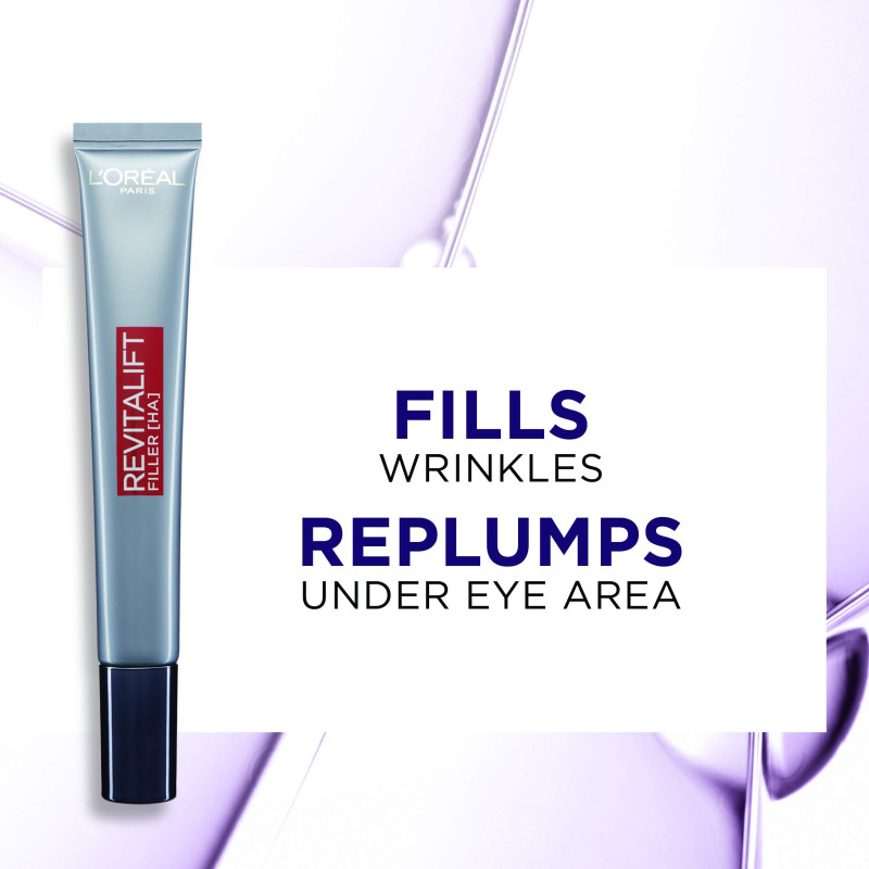 Revitalift Filler Renew Eye Cream contains the highest concentration of Hyaluronic Acid ever formulated in a L'Oréal Paris eye cream.