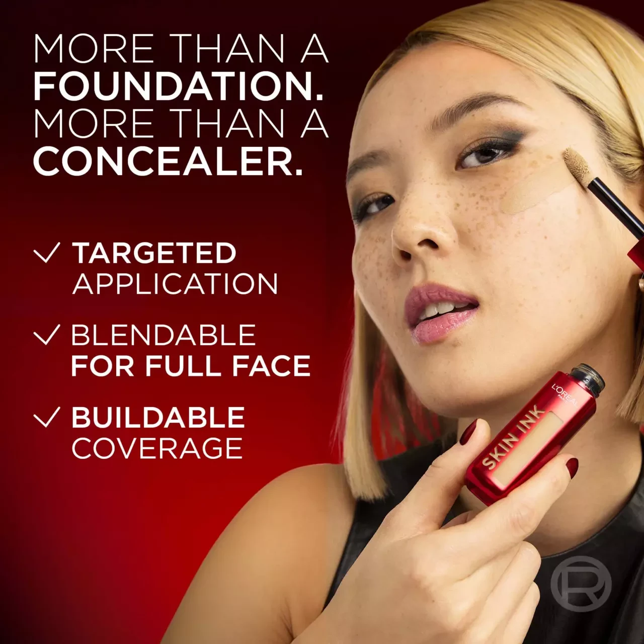 L'Oréal Paris Skin Ink 2 in 1 Foundation Concealer 15ml - 140 Light Warm is an ultra-lightweight hybrid base designed to work as both a foundation and concealer in one step for a smooth, even complexion. Its innovative “ink-like” fluid texture glides effortlessly onto the skin and blends quickly for a seamless finish. The shade 140 Light Warm is ideal for light skin tones with warm undertones, helping to enhance natural warmth while keeping the skin balanced and radiant. The highly pigmented formula offers buildable coverage, allowing you to customize from light to medium-full coverage depending on your needs. It effectively conceals dark circles, blemishes, redness, and uneven skin tone for a perfected look. The soft matte finish helps control shine while maintaining a natural skin-like appearance. It is designed for long-lasting wear, offering up to 48 hours of stay-put coverage without fading or transferring. � The waterproof and sweat-resistant formula ensures durability in heat, humidity, and daily wear conditions. � Its lightweight consistency feels breathable and comfortable, almost like a second skin. The formula sets quickly, so it blends best when applied in small sections for even results. It is suitable for normal, oily, and combination skin types, giving a smooth and refined finish. The flexible texture moves with facial expressions to prevent cracking or creasing. It works well for both all-over base application and targeted concealing. The compact 15ml packaging makes it travel-friendly and easy to carry for touch-ups. A perfect choice for achieving a flawless, natural-looking, and long-lasting complexion.