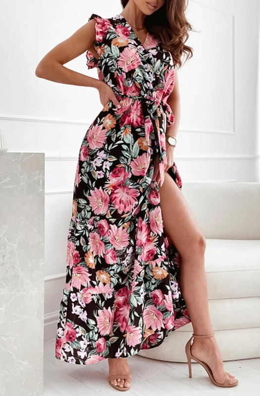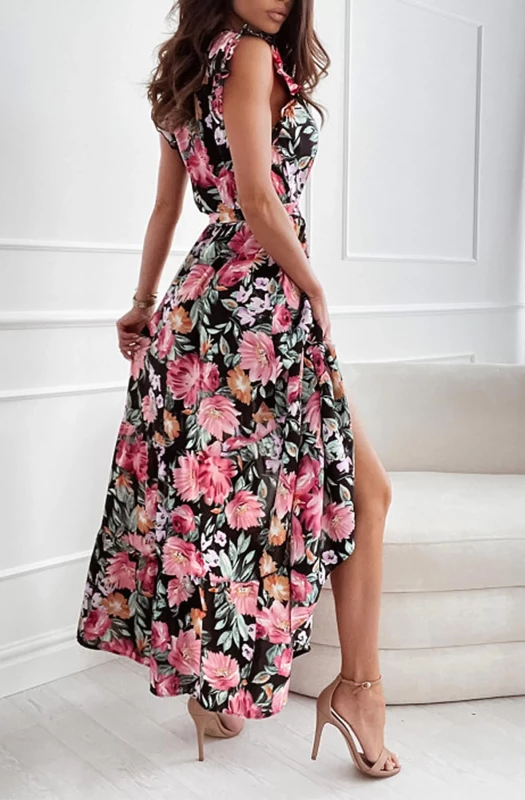 Low cut open front wrap 'V' neckline with elasticated waistband