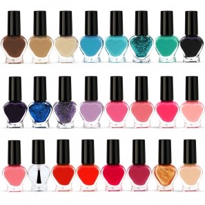 Beauty4Britain Love Nail Polish Set 24 x 5 ml Trendy Colours + Top Base Coat Stylish Nail Varnish Gift Set