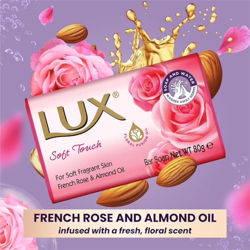 Lux Soft Touch French Rose and Almond Oil Beauty Bar Soap 80g offers a gentle and luxurious cleansing experience that leaves skin feeling soft, smooth, and beautifully pampered. Enriched with the romantic scent of French rose and the nourishing benefits of almond oil, it helps moisturise and care for the skin while cleansing. The rich, creamy lather gently removes dirt and impurities without stripping away natural moisture. Designed for daily use, it keeps skin comfortable and hydrated after every wash. Almond oil helps nourish and soften the skin, promoting a smooth, supple feel. The elegant rose fragrance leaves a delicate, long-lasting scent on the skin. The soap glides smoothly over the body for a pleasurable bathing experience. Suitable for all skin types, including normal and dry skin. Helps maintain the skin’s natural moisture balance with regular use. Rinses off easily without leaving residue. Compact 80g bar is easy to handle and ideal for everyday use or travel. Trusted Lux quality delivers a premium, sensorial bath. Leaves skin feeling refreshed, silky, and lightly perfumed. Enhances your daily self-care routine with a touch of floral elegance. Lux Soft Touch French Rose and Almond Oil Beauty Bar Soap combines gentle cleansing, nourishment, and timeless fragrance in one luxurious bar.