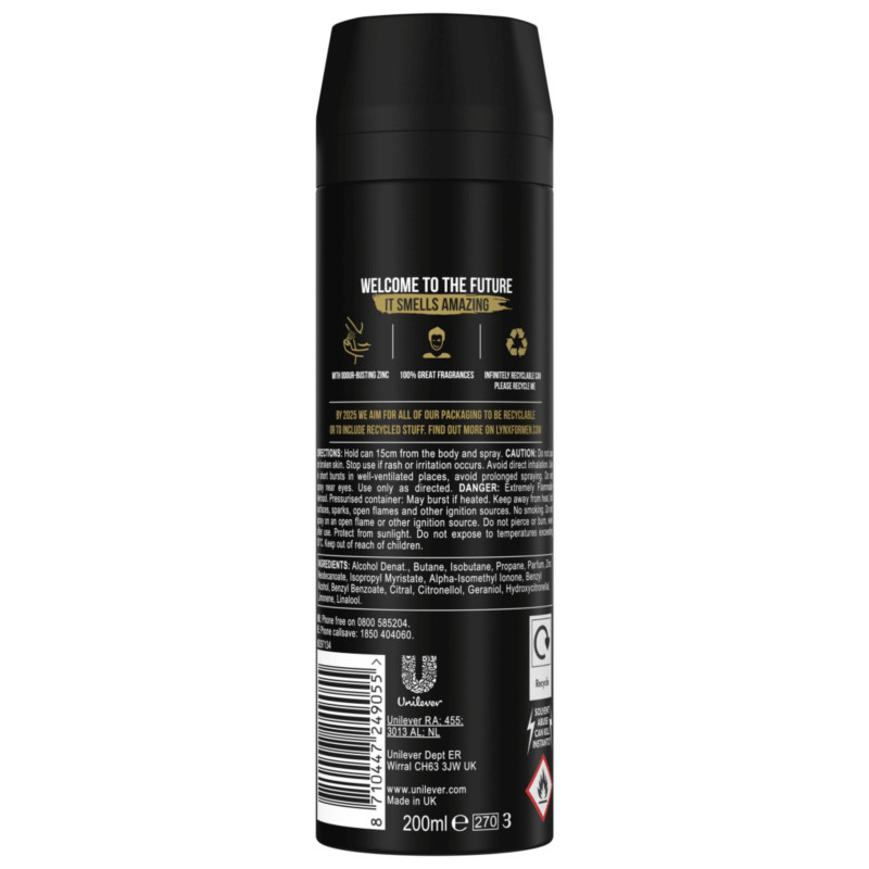 Lynx Gold Oud Wood and Fresh Vanilla Scent Men's Deodorant Body Spray 200ml delivers a bold, long-lasting fragrance that exudes confidence and sophistication. Its unique scent blends rich oud wood with smooth, sweet vanilla for a warm and masculine aroma. Designed to provide all-day freshness while effectively controlling body odour. The aluminium-free formula ensures gentle care for your skin with reliable protection. The lightweight spray applies evenly across underarms, chest, and body for full coverage. Fast-drying texture leaves no sticky residue or visible marks on clothing. Ideal for daily wear, evening outings, and special occasions. Dermatologically tested for comfort and skin safety. The generous 200ml can offers long-lasting use and value. Leaves a noticeable yet balanced scent that is sophisticated without being overpowering. Helps keep you feeling fresh, confident, and ready for any situation. Works seamlessly with your grooming routine for layered fragrance impact. Maintains freshness and odour control even during busy or active days. Provides a smooth, comfortable feel on the skin. Lynx Gold Oud Wood and Fresh Vanilla Body Spray combines luxurious fragrance, gentle care, and dependable all-day performance in one essential product.