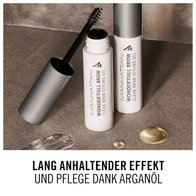 Manhattan Wonder'Full Brow Styling Gel - 004 Clear is a lightweight, transparent brow gel designed to tame, set, and hold brows in place all day for a naturally groomed look, its clear formula makes it versatile for all brow shades and hair colors, offering a polished finish without adding pigment, perfect for those who want definition without altering their natural brow tone, the gel applies smoothly with its precision brush, coating each hair evenly for a neat and controlled appearance, ideal for use alone for a subtle look or layered over brow pencils and powders to lock in color and shape, the non-sticky texture ensures comfort and a natural feel without stiffness, resistant to smudging or flaking, it keeps brows in place even in humid or active conditions, quick-drying for convenience, it’s perfect for busy mornings or on-the-go touch-ups, the lightweight formula is suitable for daily wear, providing long-lasting hold without weighing down the brows, its compact packaging makes it easy to carry in your makeup bag for anytime use, dermatologically tested, it is gentle on skin and suitable for all skin types, the clear gel blends effortlessly into any routine, enhancing both minimal and full makeup looks, giving brows a lifted, polished, and professional finish, it’s the ultimate solution for anyone seeking fuss-free brow styling, delivering all-day control and natural-looking perfection.