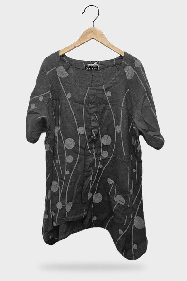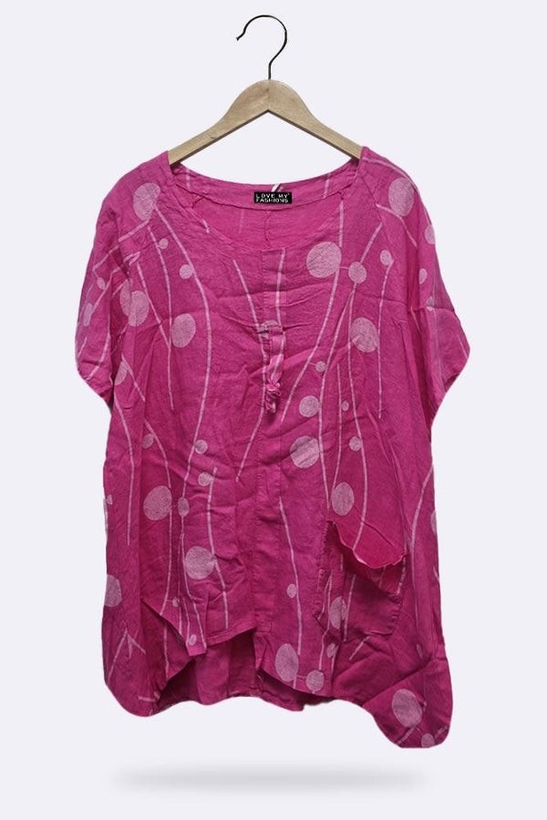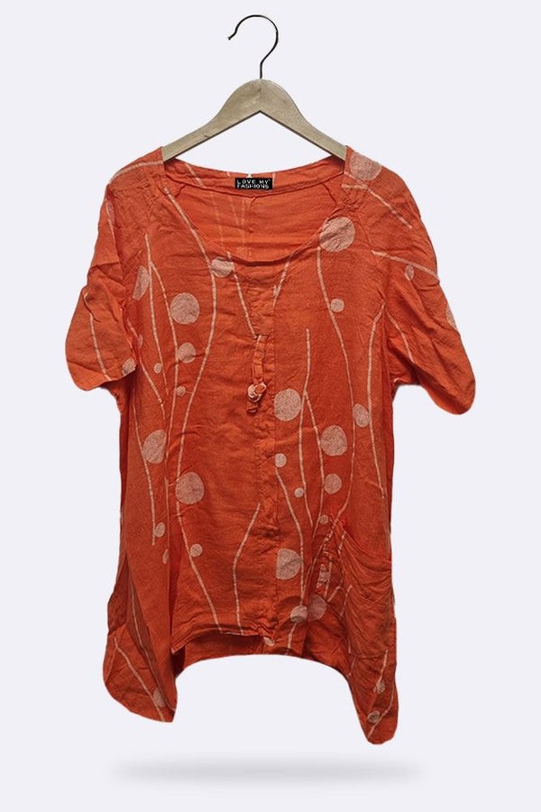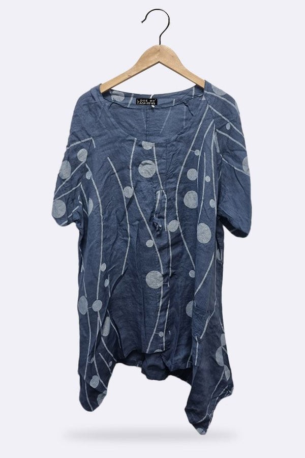 This season calls for quality fabrics and medium weight material. Features Linen material-Marble Effect Print-Tunic-Short Sleeves-Round Neck-One Size Fits Perfectly-Italian Top.