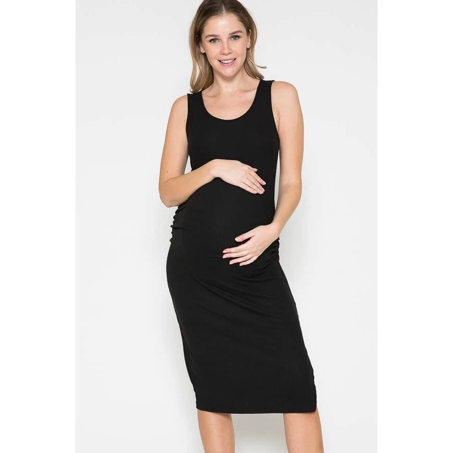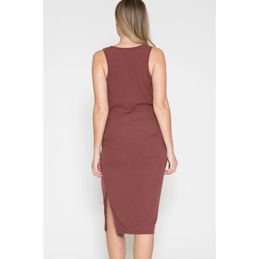 Maternity Round Neck Sleeveless Side Opened Midi Dress