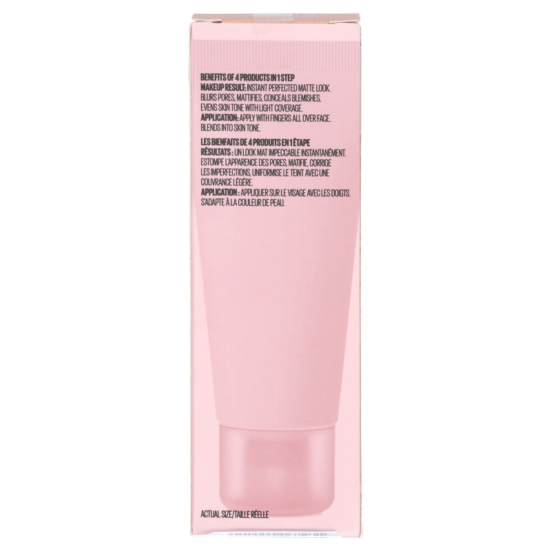 The product features a whipped lightweight formula that blurs pores, conceals blemishes, mattifies, and evens skin tone while combining four products in one.