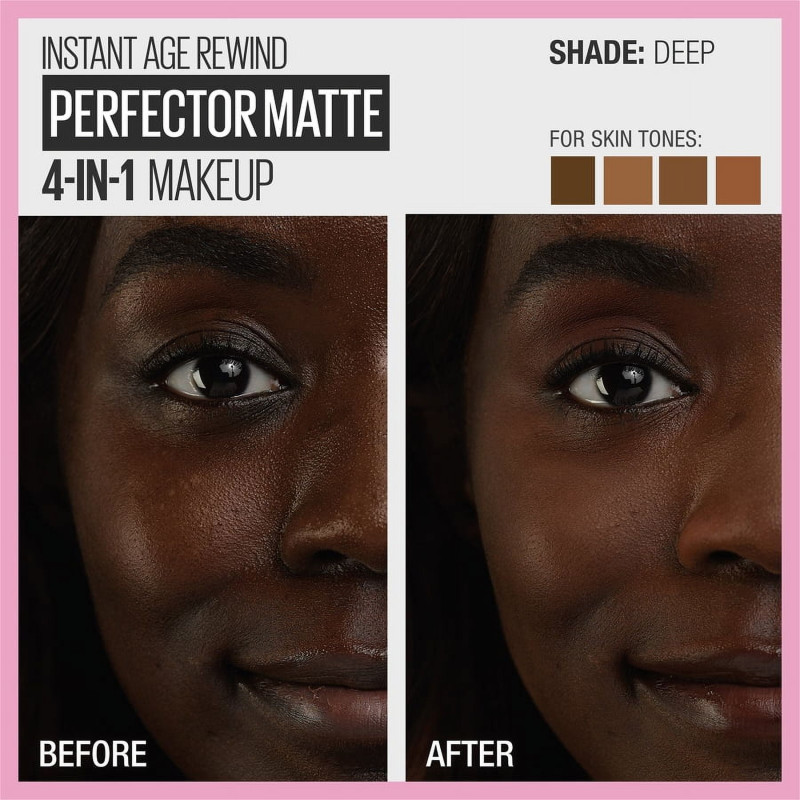 Maybelline Instant Anti Age Perfector 4-in-1 Whipped Matte Makeup – 05 Deep is a multi-purpose face makeup designed to simplify your routine while delivering smooth, even-looking skin with a soft matte finish. Its innovative 4-in-1 formula works as a primer, concealer, foundation, and mattifying powder, helping create a flawless complexion in just one step. Shade 05 Deep is ideal for deep to very deep skin tones, blending naturally to provide balanced and natural-looking coverage. The whipped mousse-like texture feels light and airy, allowing it to glide smoothly across the skin without feeling heavy. It helps blur the appearance of pores, fine lines, and imperfections for a soft-focus, airbrushed effect. The lightweight formula also helps conceal blemishes and uneven skin tone while keeping the complexion looking smooth and refined. Designed to mattify the skin, it helps control excess shine and provides a comfortable matte finish throughout the day. Its breathable texture keeps skin feeling fresh and comfortable during long wear. The formula provides light to medium buildable coverage that can be layered depending on your desired look. It blends easily using fingertips, brushes, or makeup sponges for effortless application. Ideal for quick makeup routines when you want multiple benefits in one product. Suitable for normal, combination, and oily skin types. The compact packaging makes it convenient for travel or quick touch-ups. It can be worn alone for a natural look or layered with other makeup products for a more polished finish. Maybelline Instant Anti Age Perfector 4-in-1 Whipped Matte Makeup 05 Deep delivers pore-blurring coverage, shine control, and a naturally perfected matte complexion in one easy step. ✨