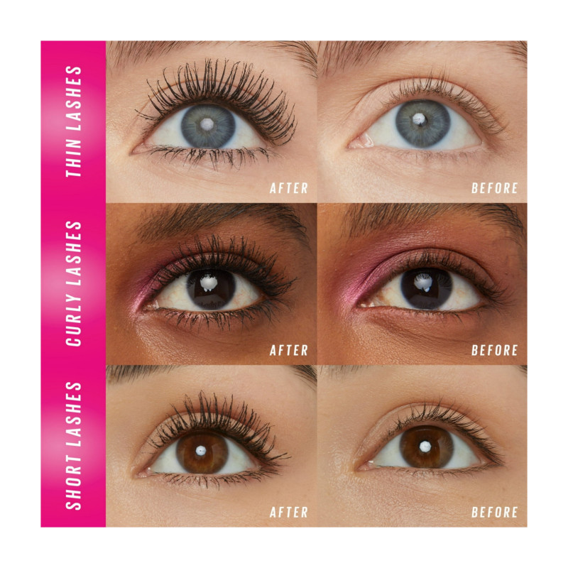 The unique brush features ten layers of bristles that capture even the tiniest lashes from root to tip, ensuring no lash is left behind. Its intensely pigmented black formula coats lashes evenly, adding dramatic depth and standout separation with every stroke.