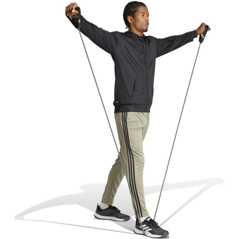 The Men’s Adidas ‘Train Essential Seasonal’ Full Zip Hoodie is a versatile and stylish piece designed for men who value comfort, functionality, and modern athletic style. Crafted from soft, high-quality fabric, it provides warmth and all-day comfort whether you’re training, running errands, or relaxing. The hoodie features a bold Adidas logo on the front chest, showcasing iconic branding with a sleek, sporty look. Its full zip design allows for easy layering and adjustable ventilation, making it ideal for changing weather conditions. Two front pockets offer practical storage for essentials or a cozy place to keep your hands warm. The hood provides extra coverage and protection against the elements, while ribbed cuffs and hem ensure a secure, snug fit without restricting movement. Lightweight yet durable, it is perfect for both workouts and casual streetwear. The clean, minimalist design pairs effortlessly with joggers, shorts, or jeans. High-quality stitching ensures long-lasting durability and shape retention. Its regular fit delivers a modern, athletic silhouette that flatters all body types. Soft interior lining enhances comfort and coziness throughout the day. Suitable for outdoor activities, gym sessions, or daily wear. The classic style makes it a wardrobe staple that never goes out of fashion. A must-have for Adidas fans, combining iconic style, practicality, and comfort in one essential hoodie.